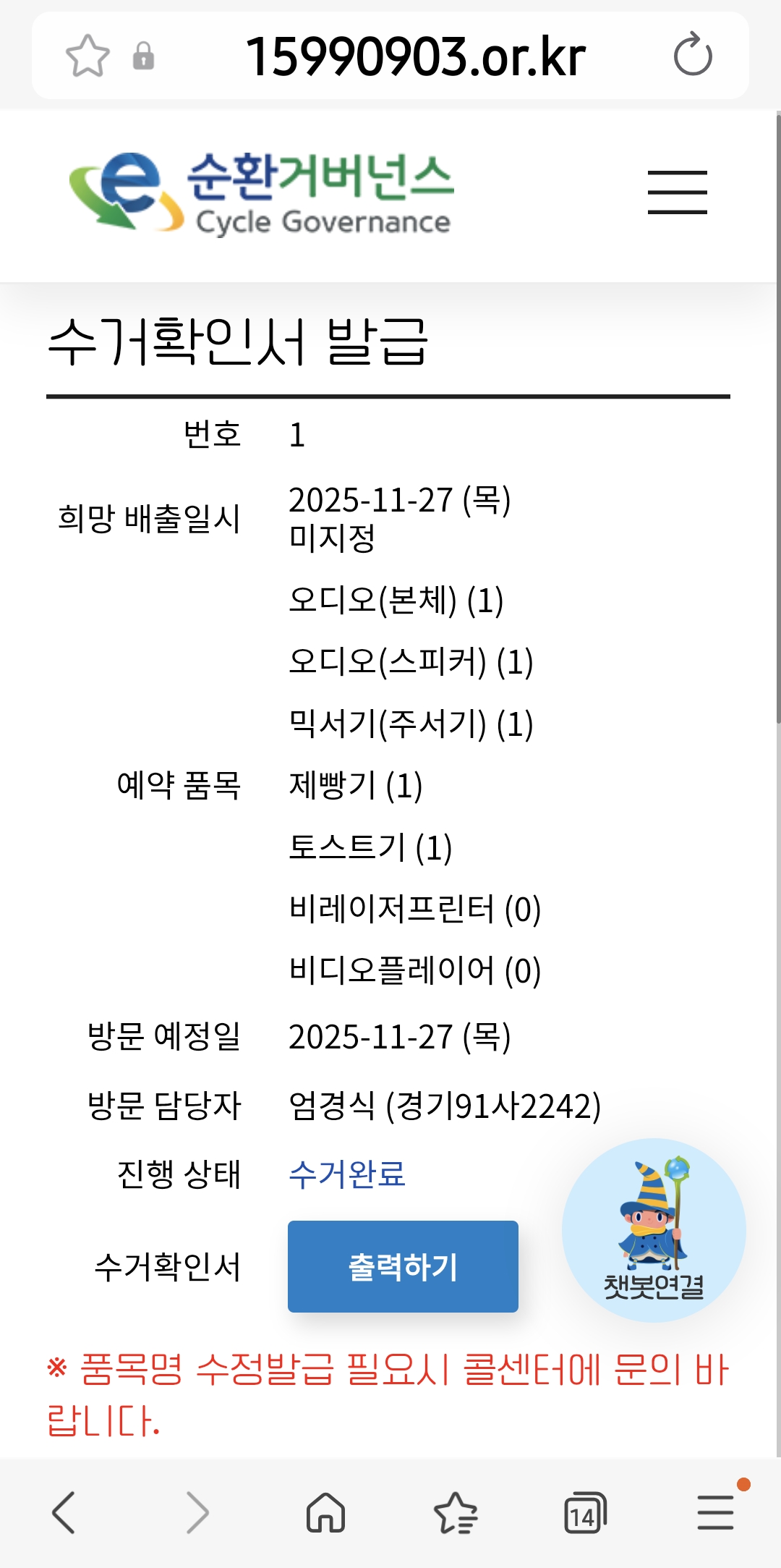 폐가전 소형가전제품 수거완료