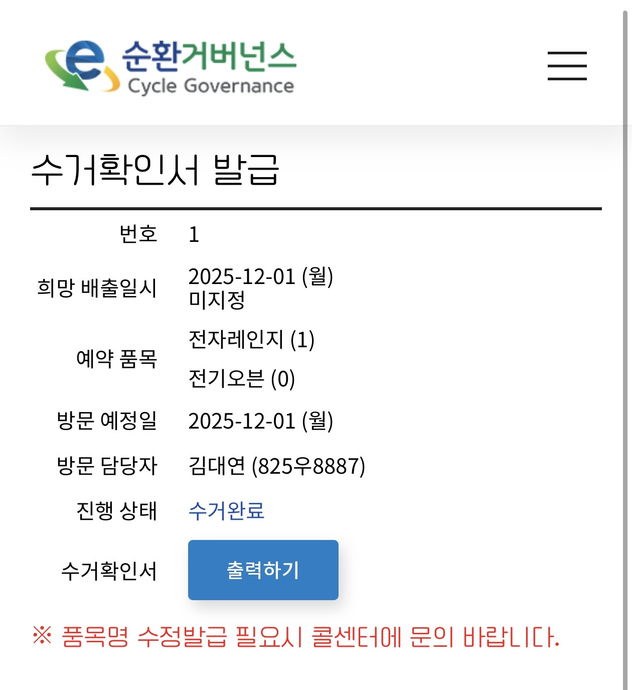 예약일에 무상수거 진행해주셨어요!