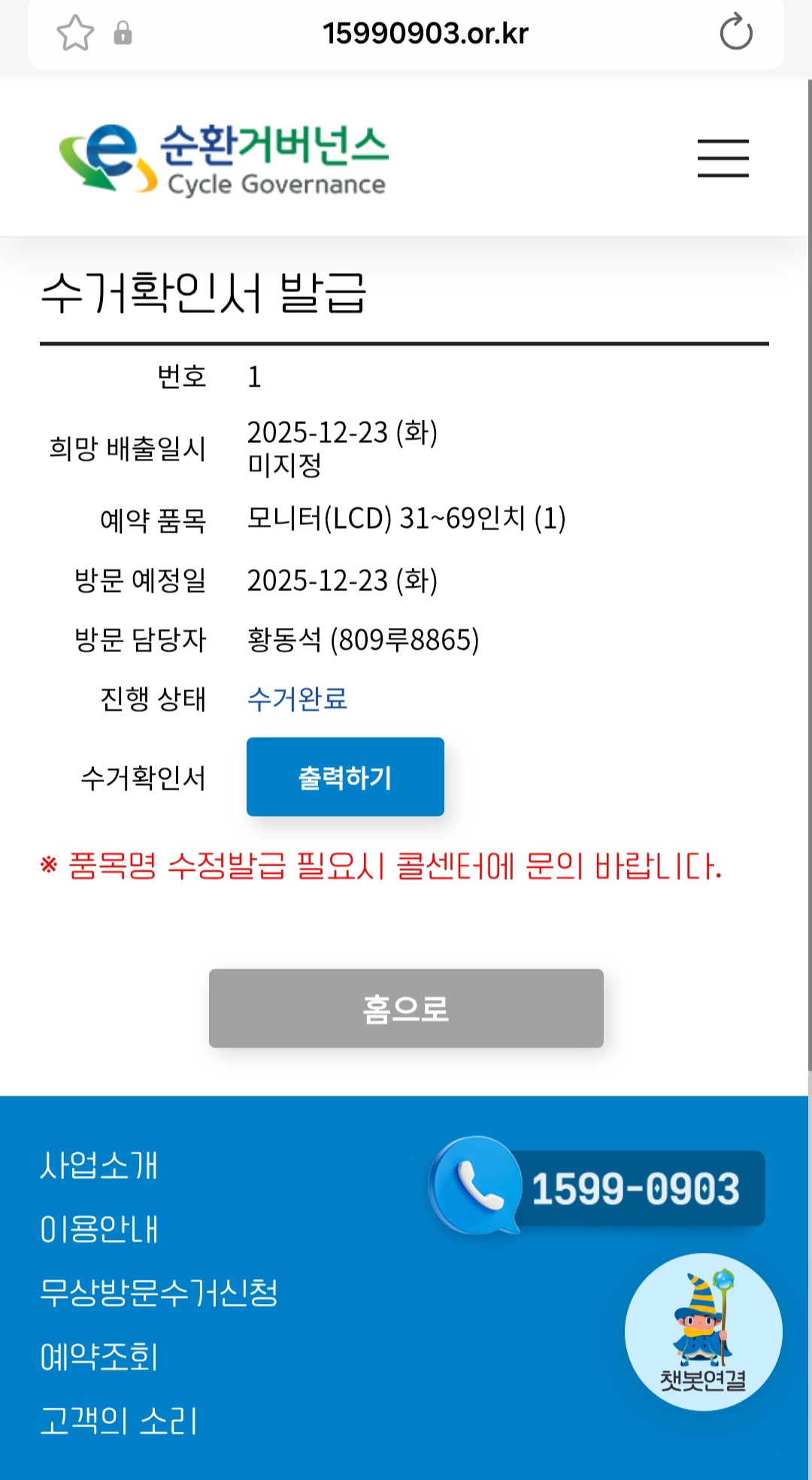 무상 방문 서비스 이용해서, 오늘 기사님이 대형 스마트 모니터 수거해 가셨습니다.