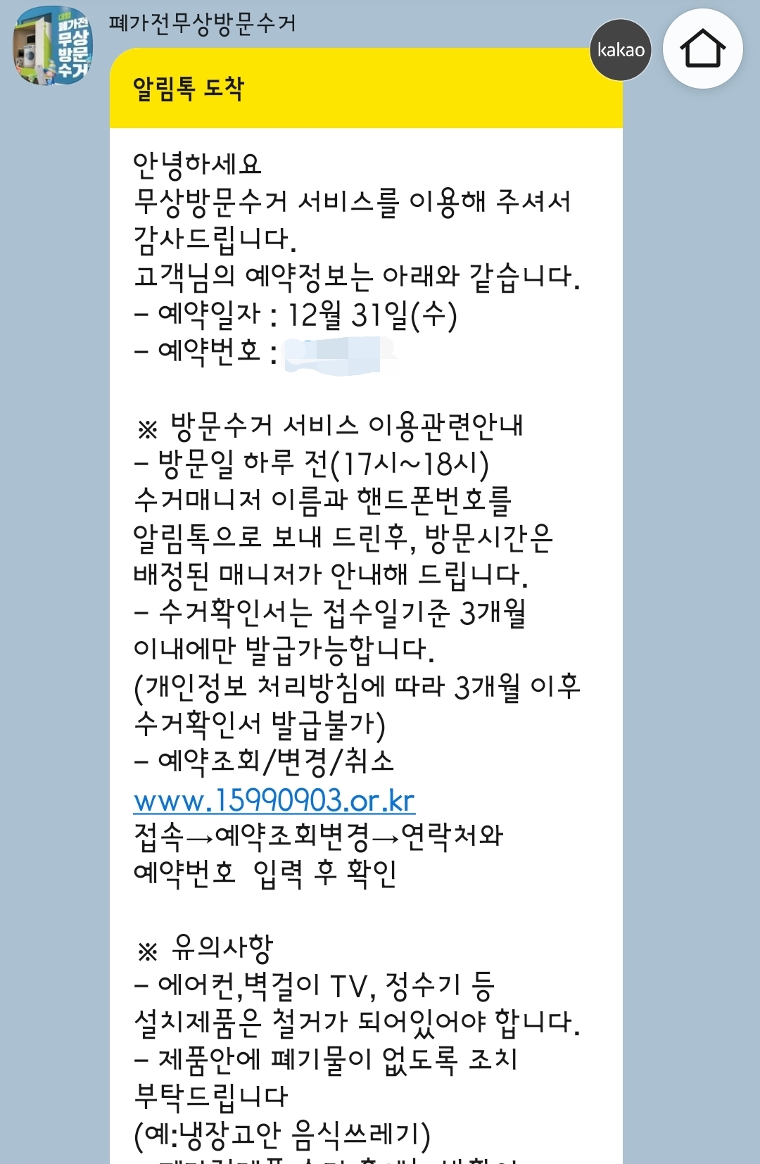 폐가전 수거 신청완료