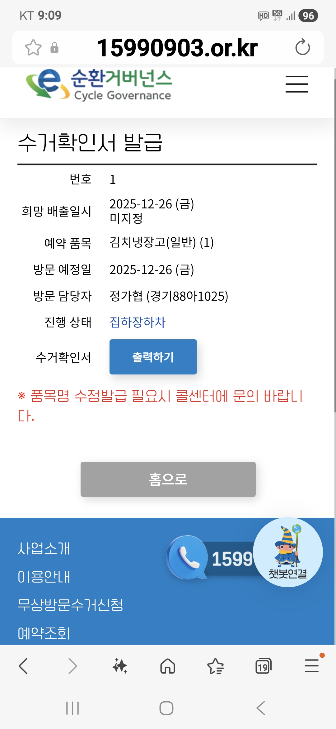 집에서 수거신청할수 있어 좋아요