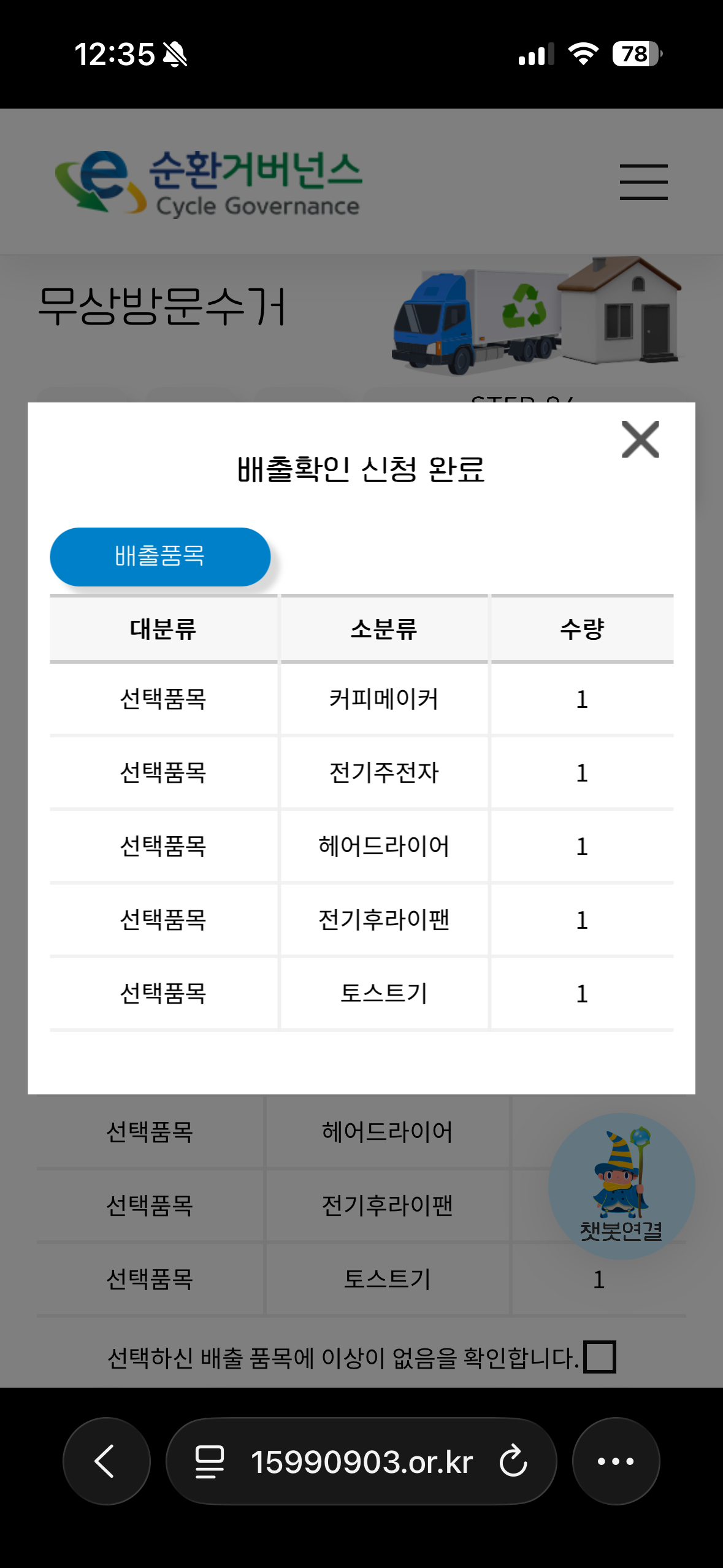 폐가전제품 수거 인증