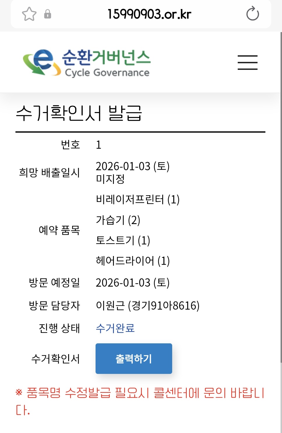 품목/수량 선택 (필수)