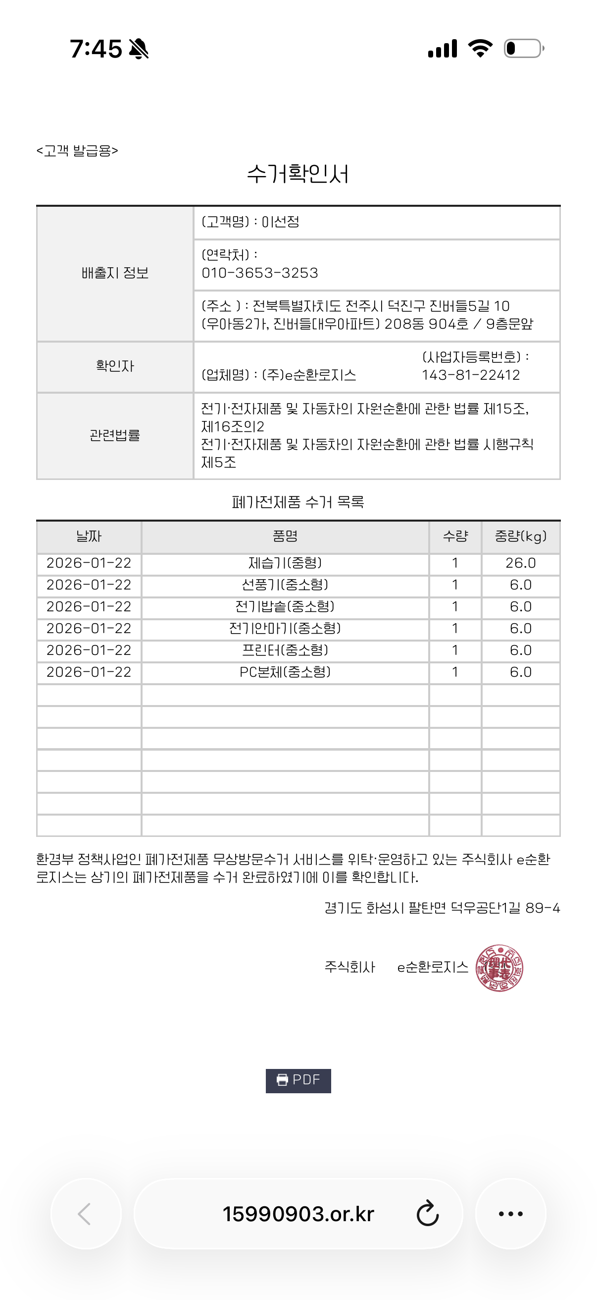 폐가전 무상수거했어요