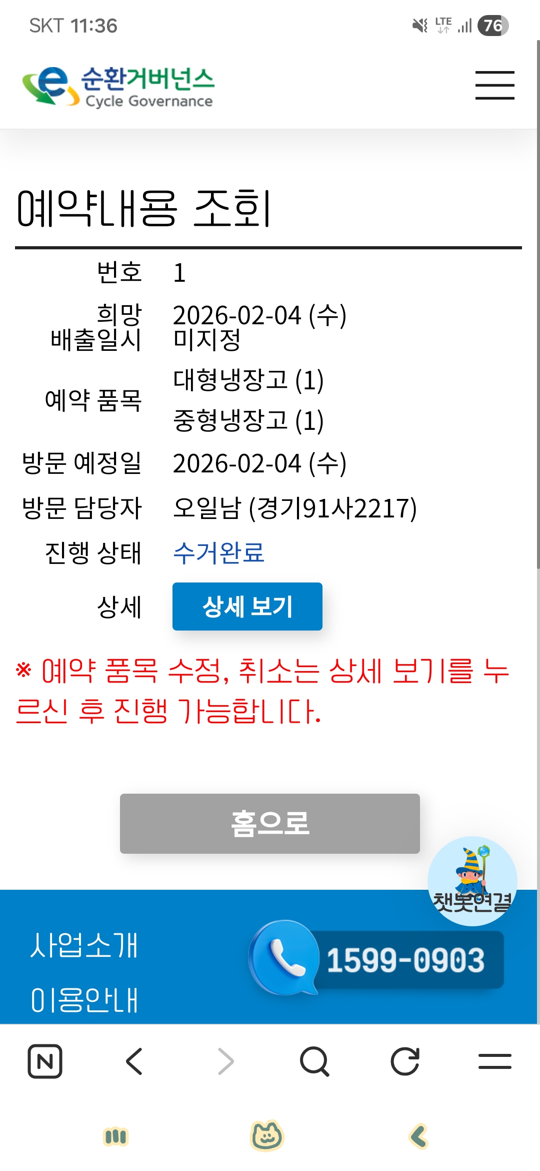 스탠드 김치냉장고 예약, 수거까지 완료되었습니다