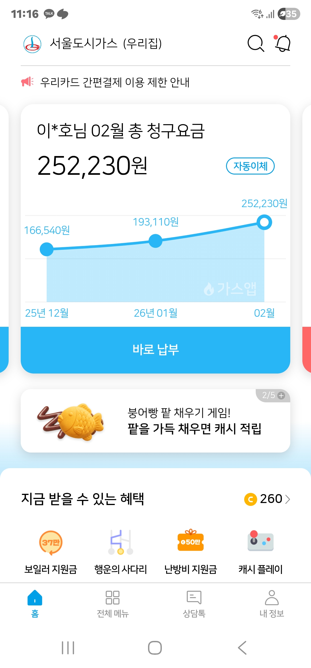 가스비 청구 고지서 모바일로 받으니 편해요