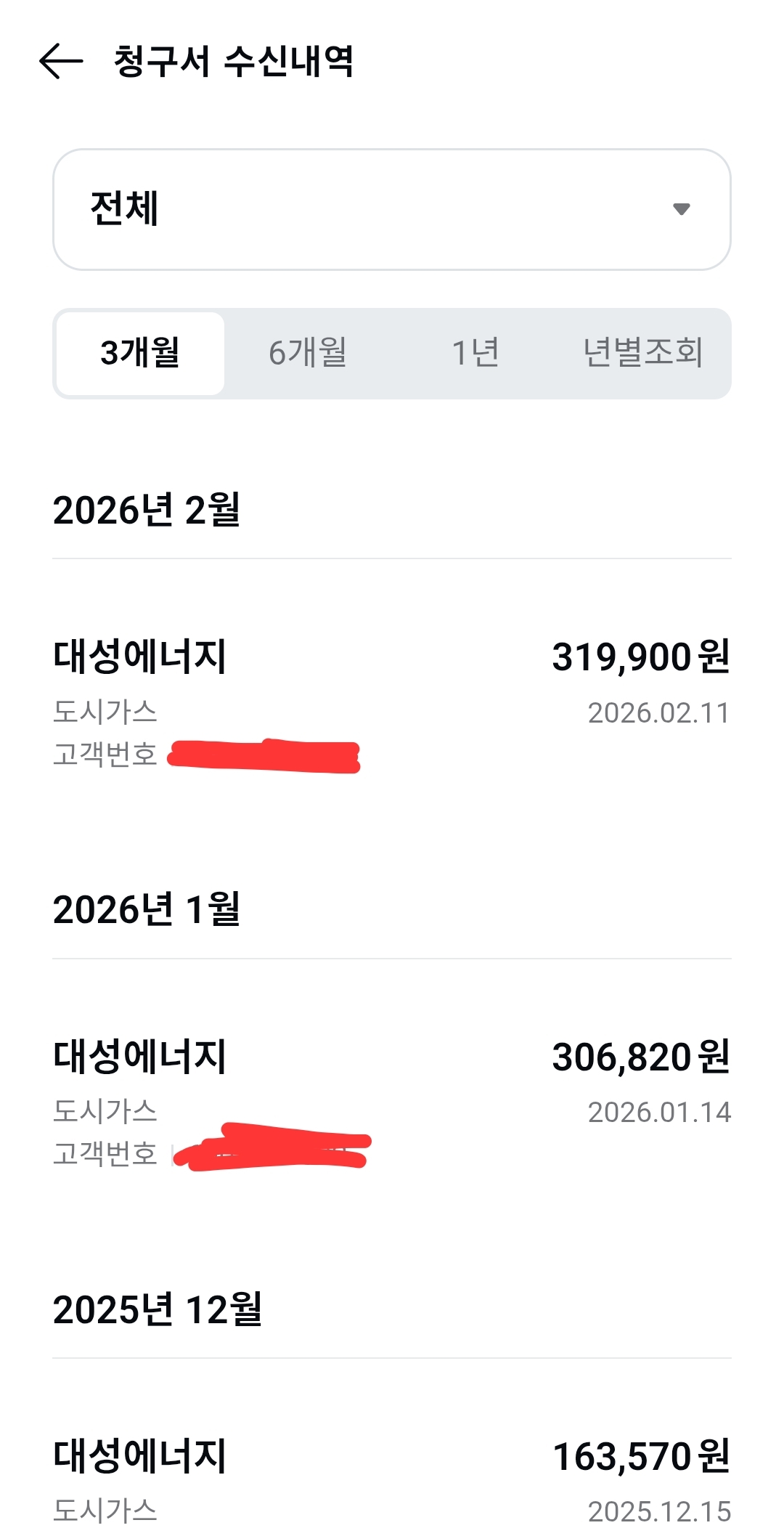 모바일 가스 청구서