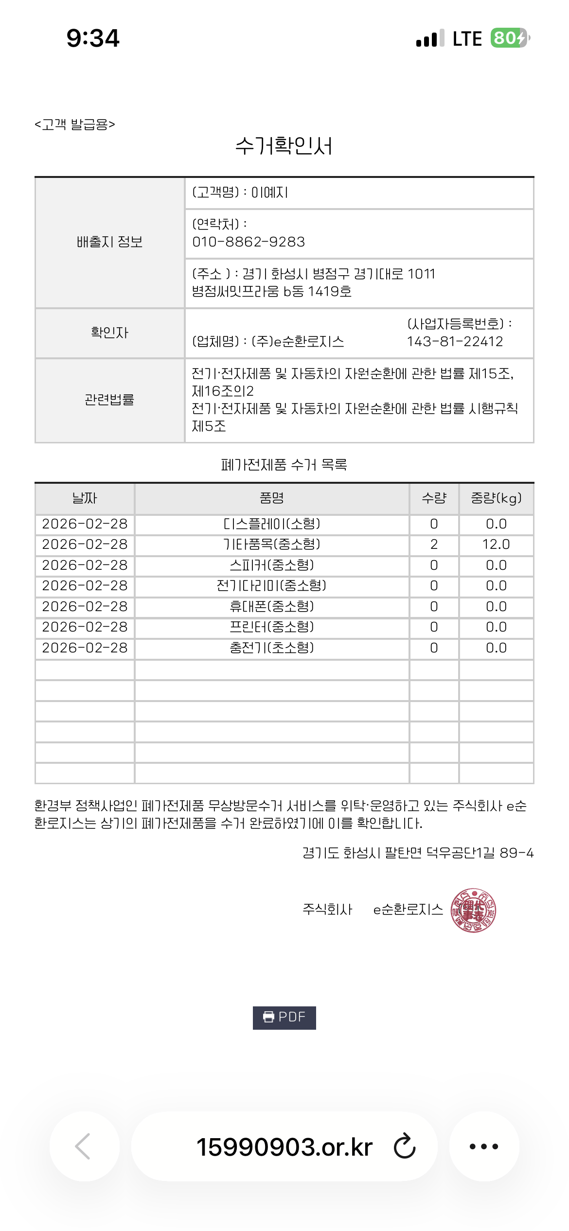 폐가전제품 수거 완료했어요!