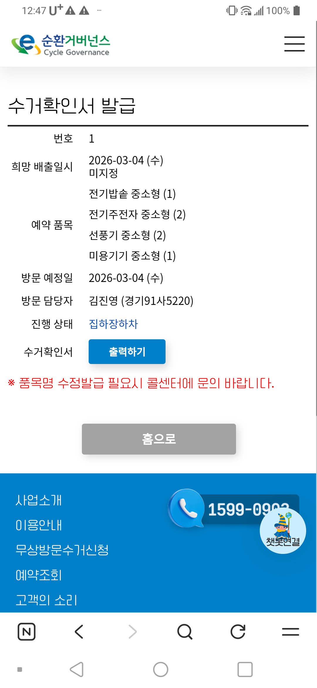 폐가전 무상수거 참여완료