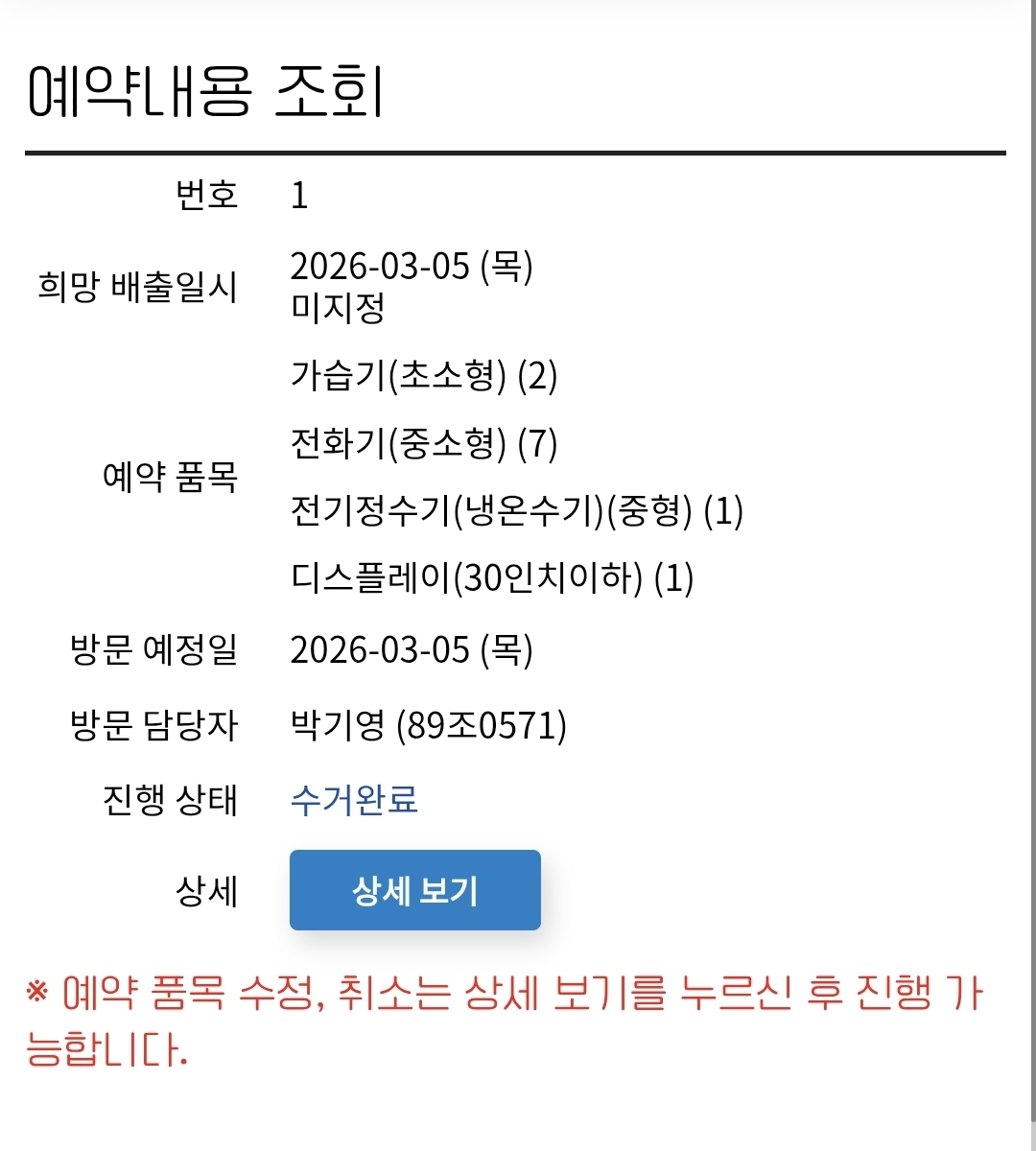폐가전 배출했습니다
