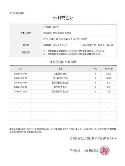 폐가전제품 배출 인증합니다