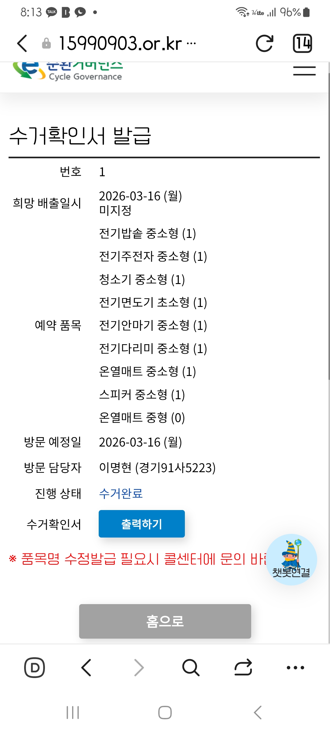 폐가전 방문 무상 수거에 참여한 사진   올립니다
