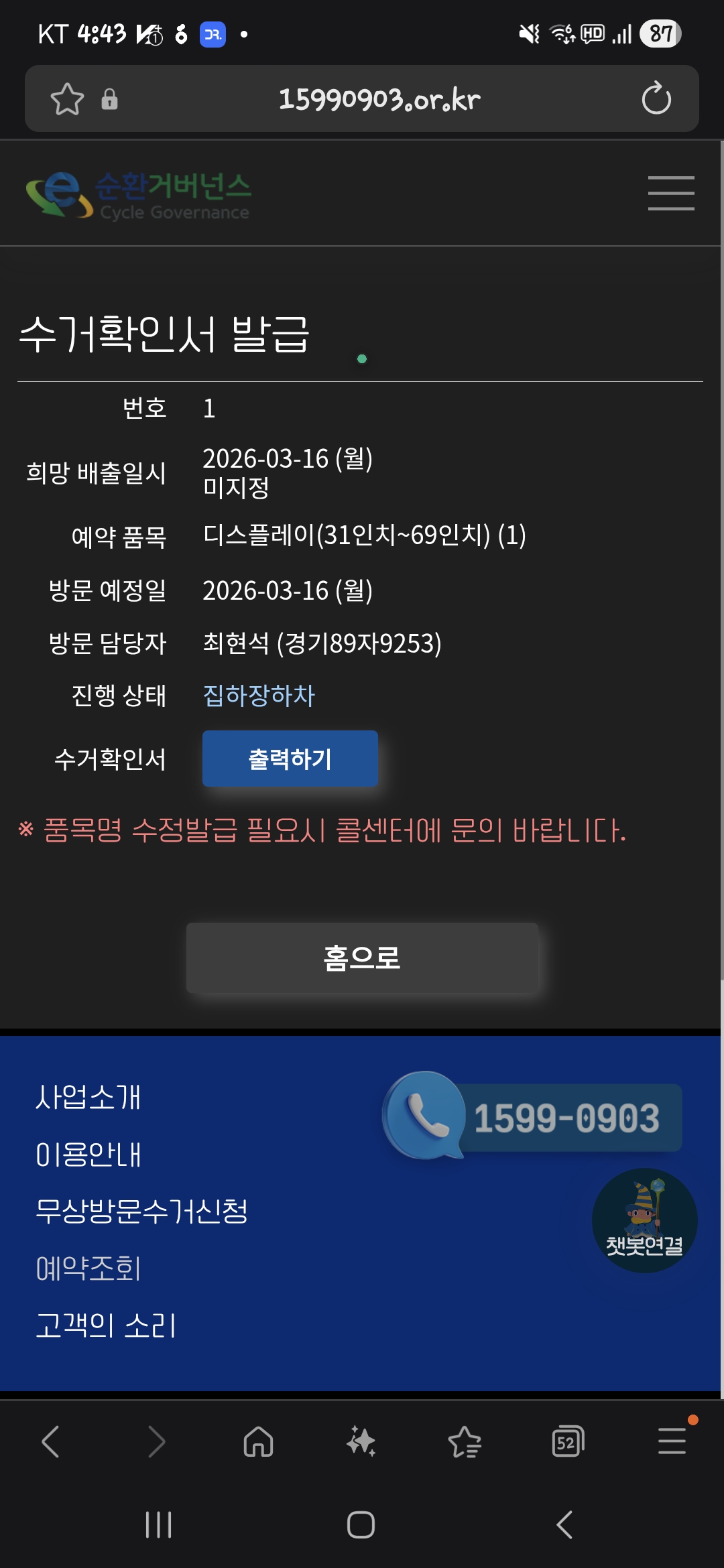 예약하고 보냈습니다