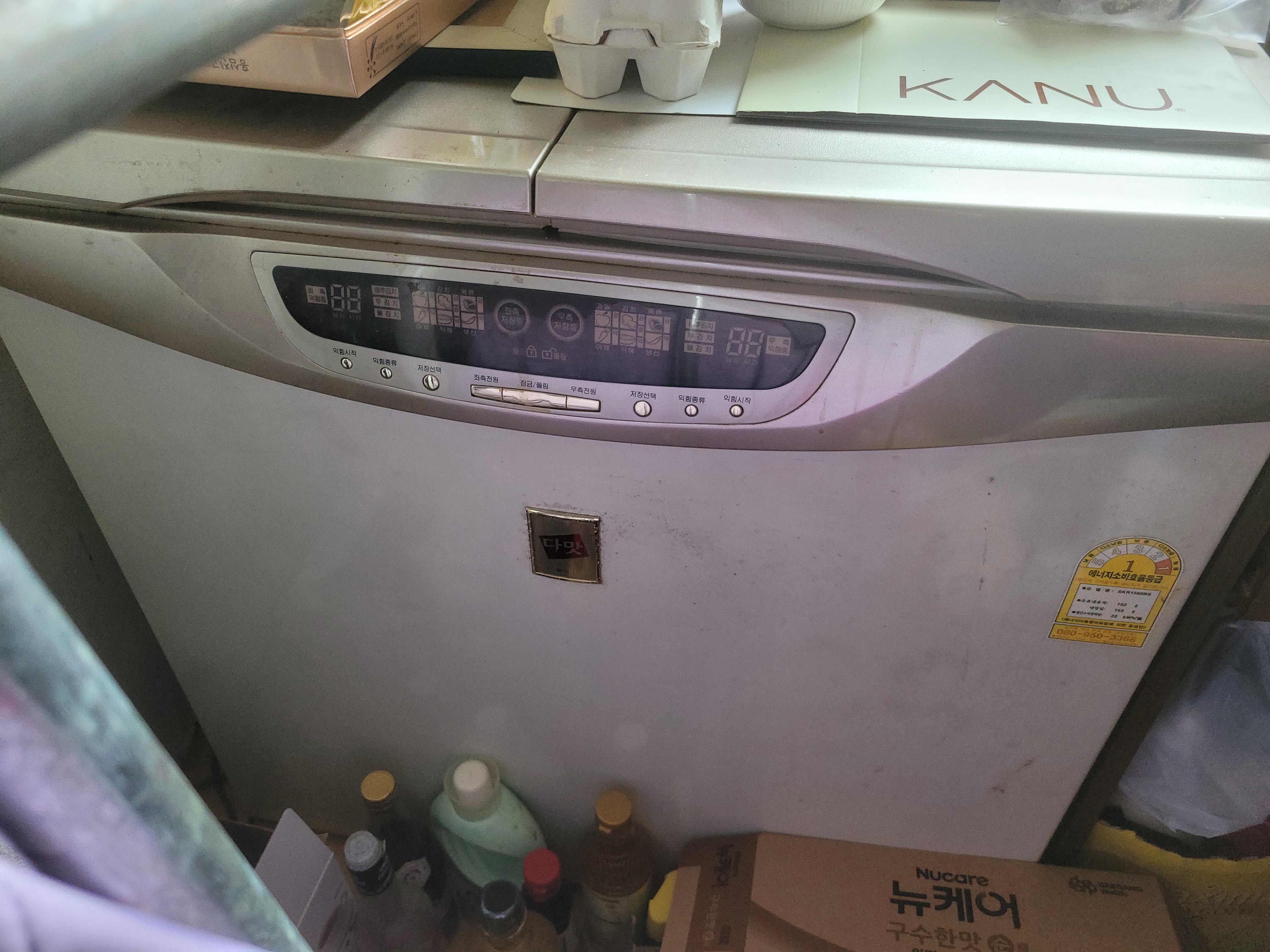 150L 김치냉장고 2층 실내에 보관되어 있습니다.