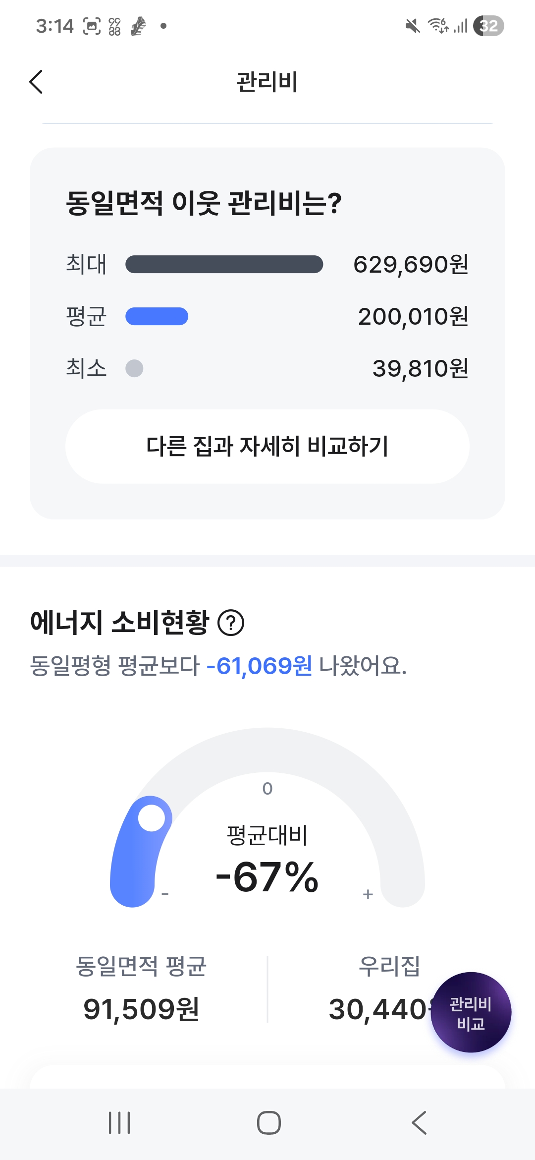 아파트 관리 향후 추이도 확인해보고 다른 집과도 비교해 봤습니다. 온수비를 더 절약해야겠네요.