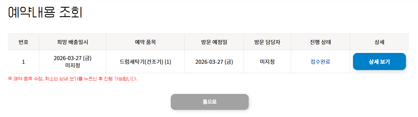 폐가전 무상수거 처음 신청해봤다고 글 올린 사람인데, 세탁기 사진만 올리고 신청내역 인증을 안 올렸더라구요~ 다시 한번 더 올릴게요 죄송^^
