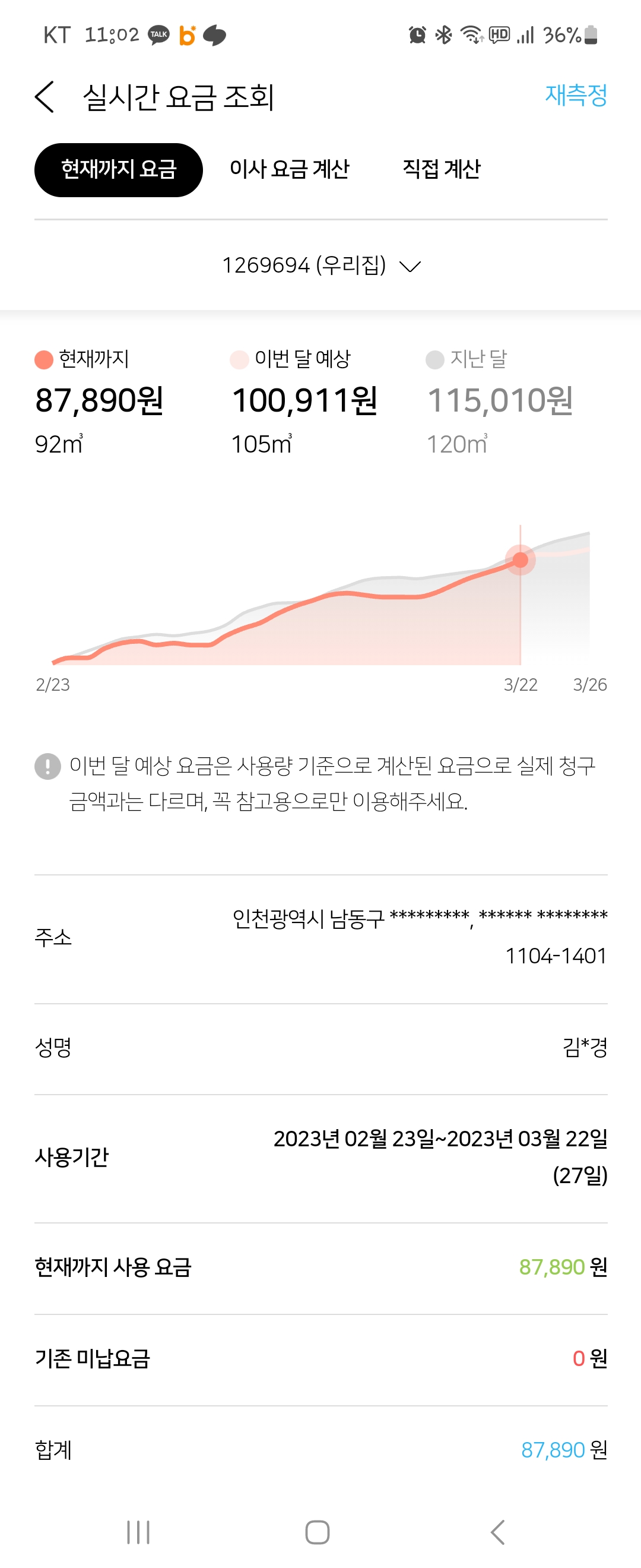 실시간으로 가스요금 조회도 해보고 얼마나 썼는지 얼마나 나올지 예상가능해서 좋아요!