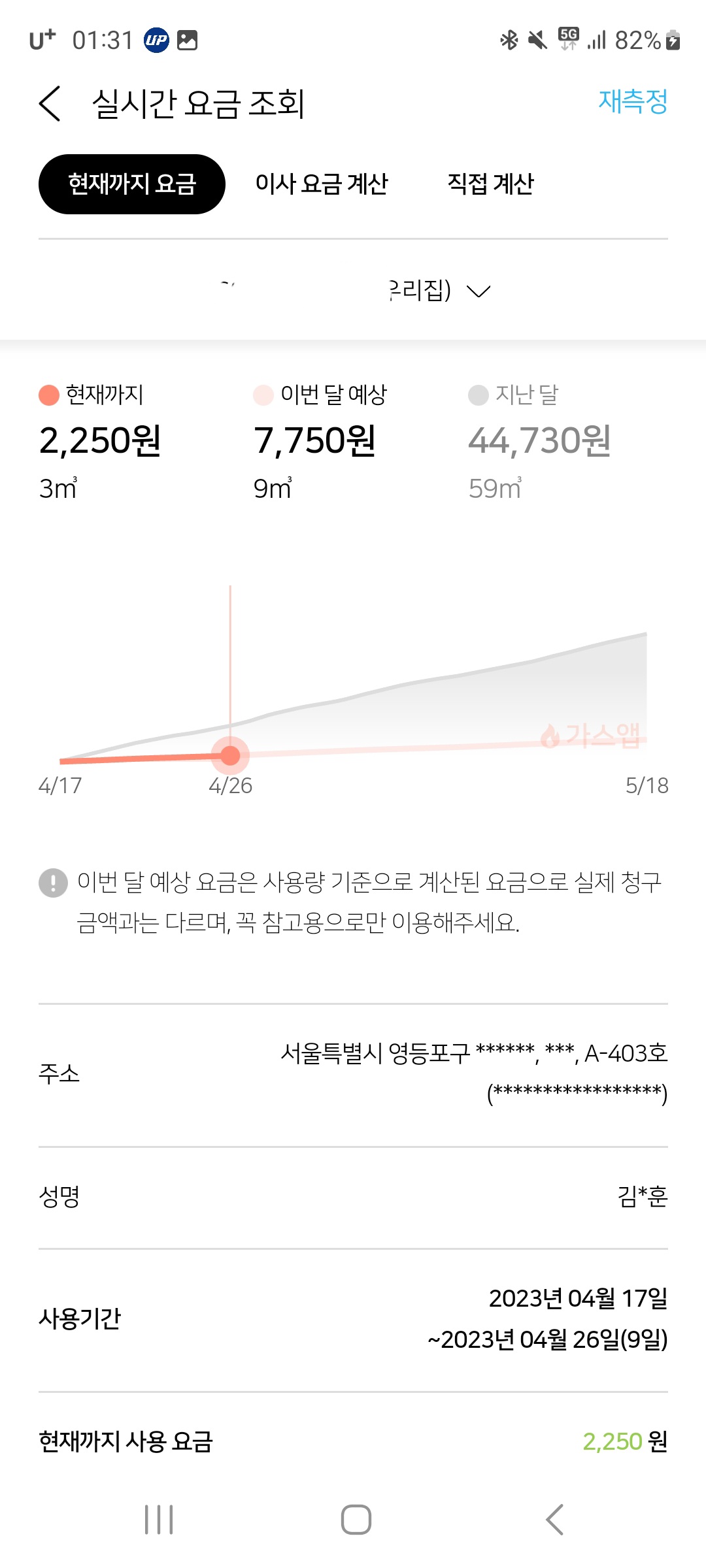 실시간 요금조회