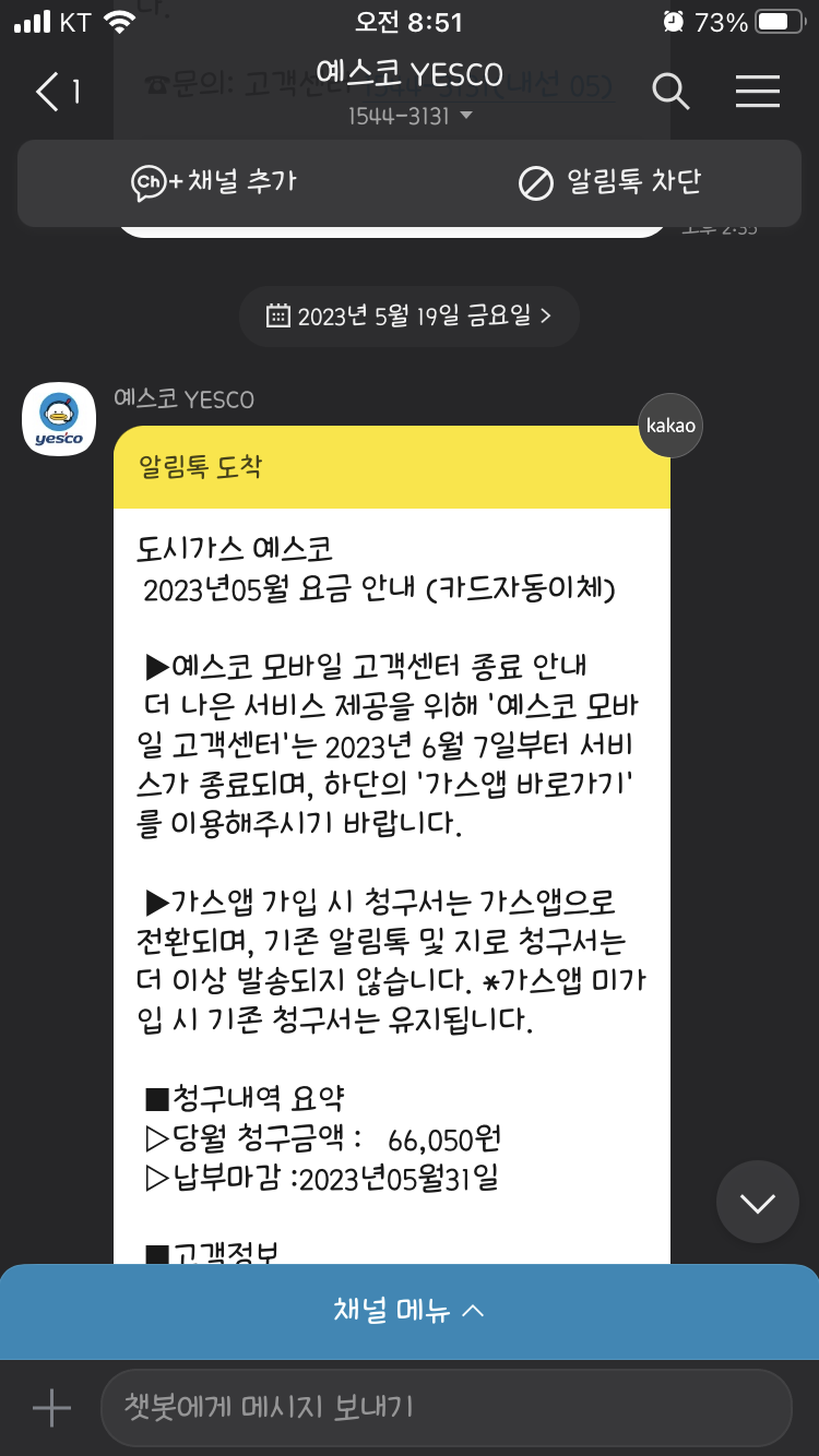 생활 챌린지 가스앱 모바일 청구서