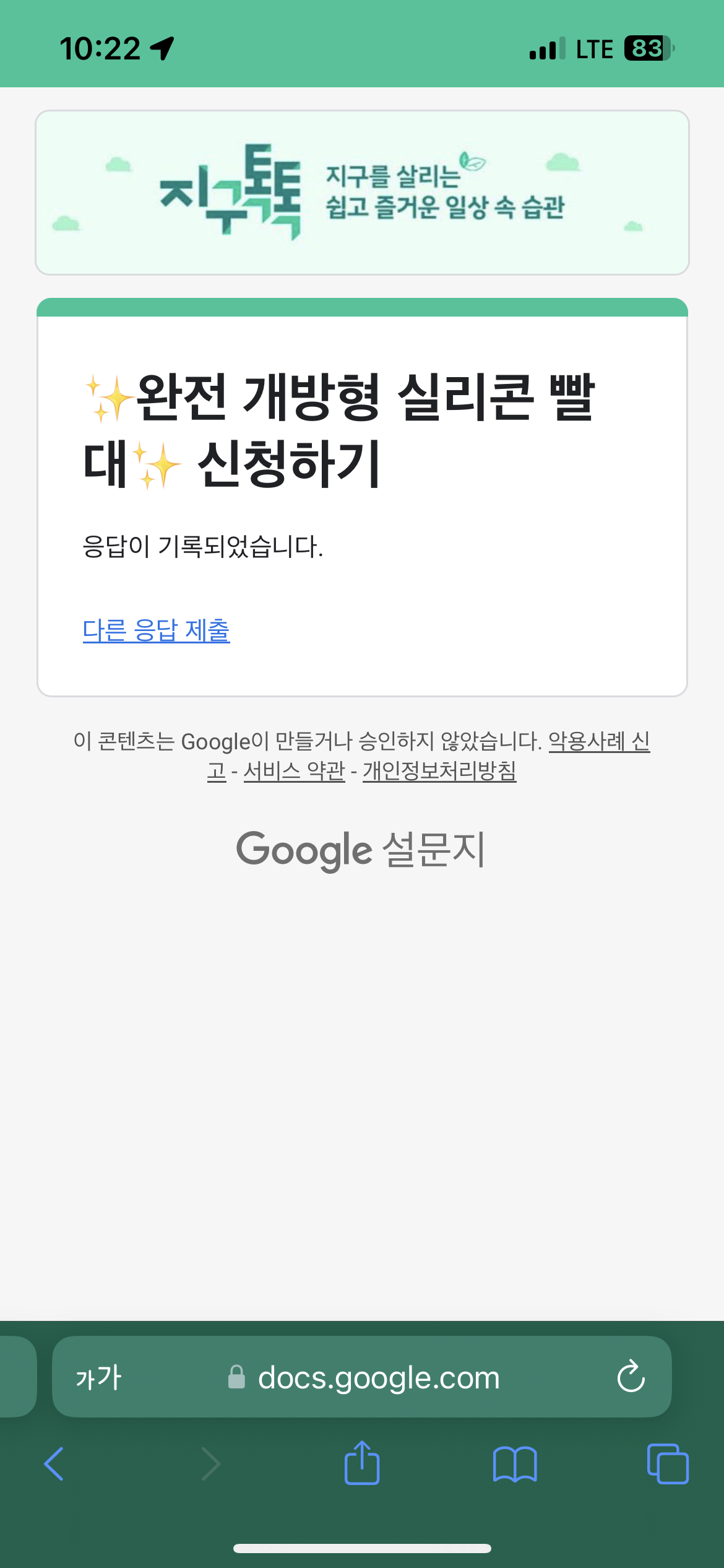지구톡톡 캠페인 신청 완료