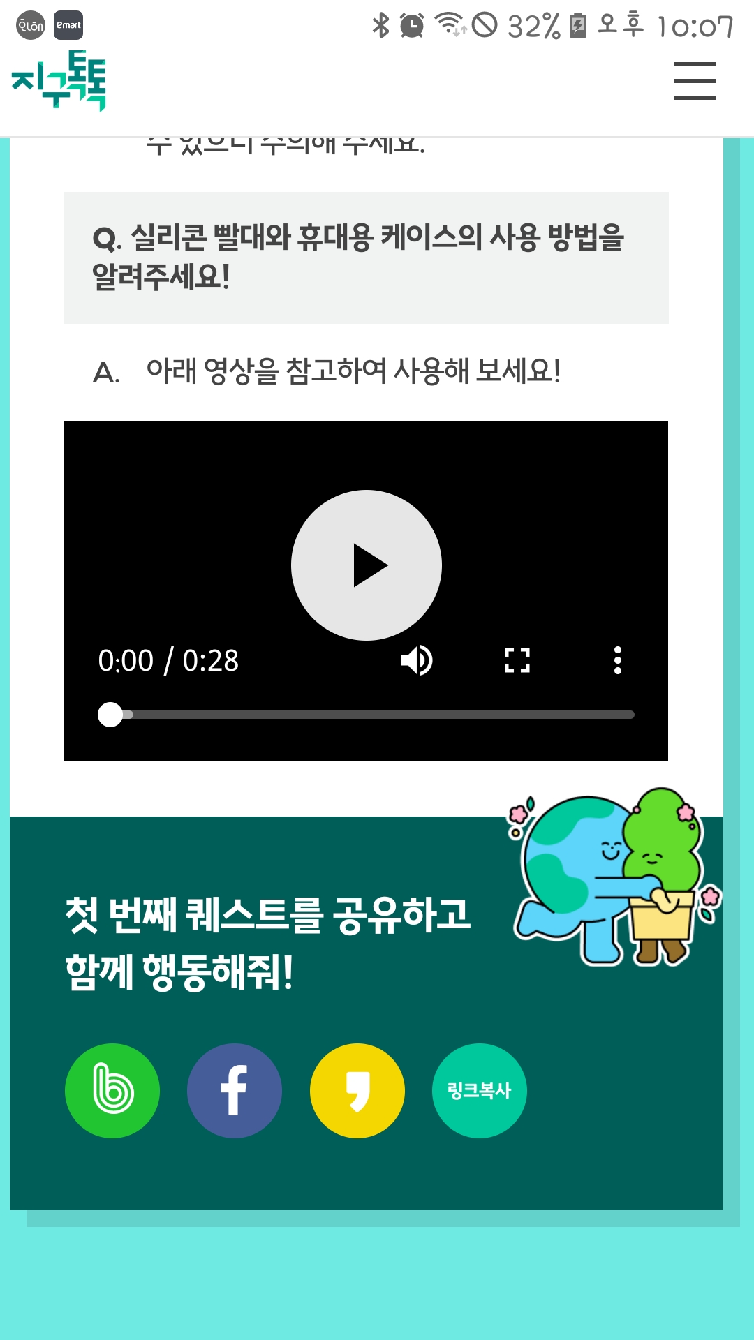 실리콘 빨대 챌린지에는 조기종료로 참여하지 못했지만 캠페인 내용 찬찬히 다 읽어보았습니다. 지구를 위해 더 마음쓰며 행동할게요~