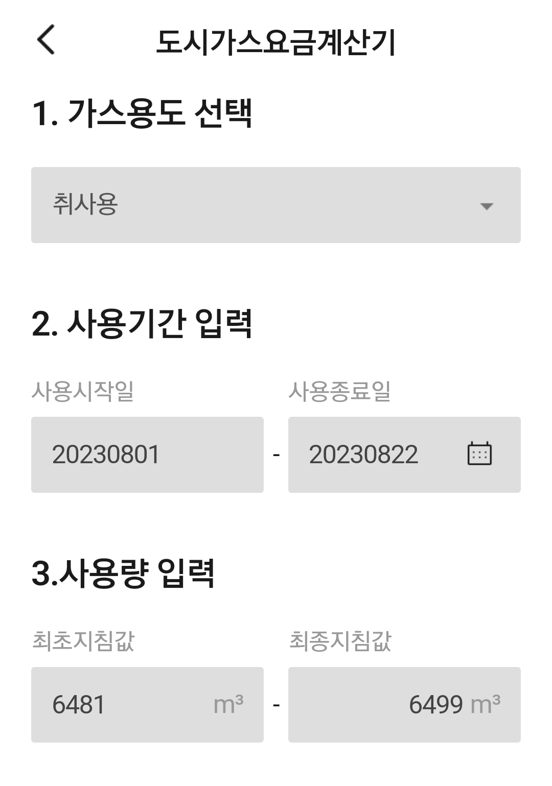 도시가스 실시간 가스요금조회