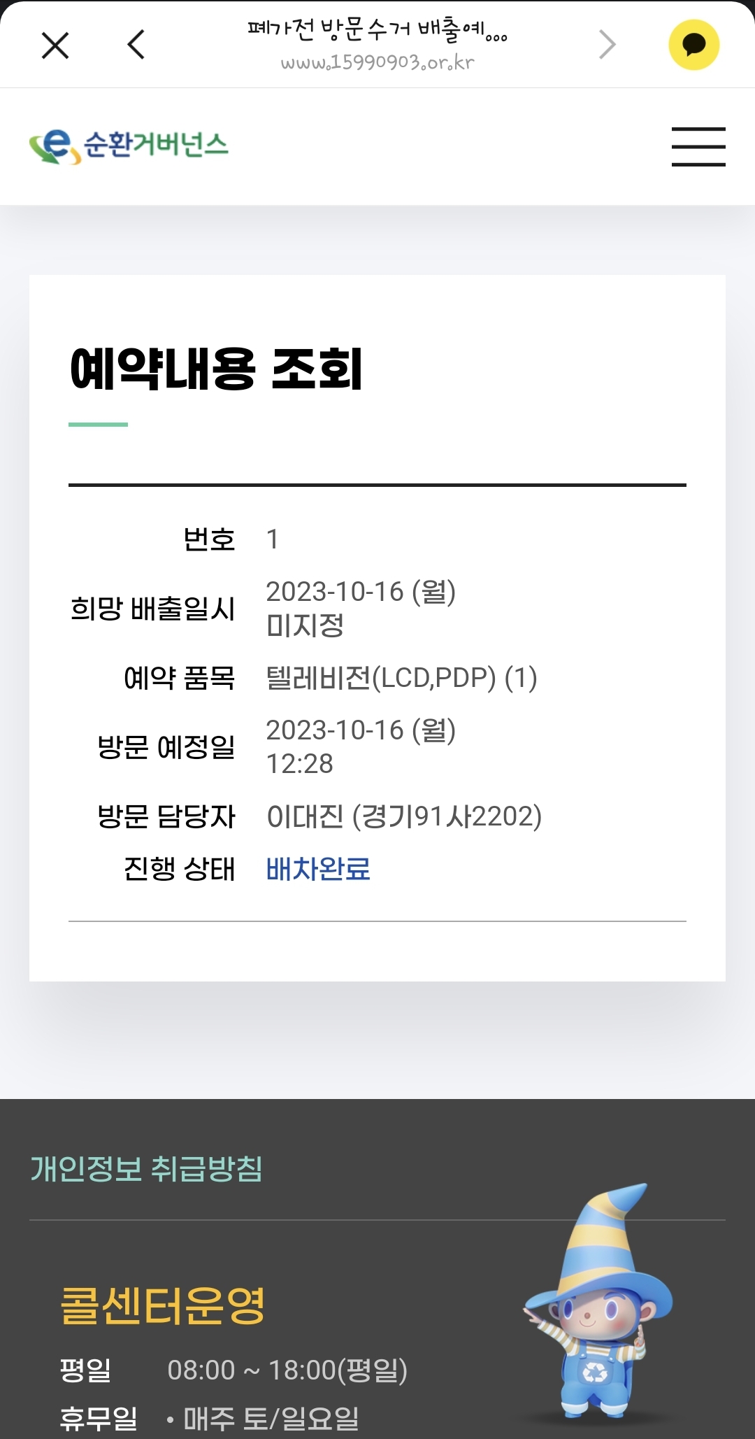 TV 수거되었어요