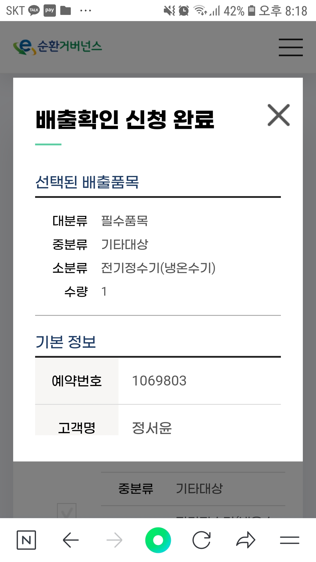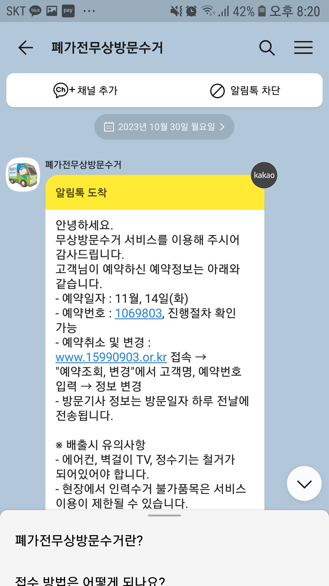 정수기 교체 후 수거 신청했어요.