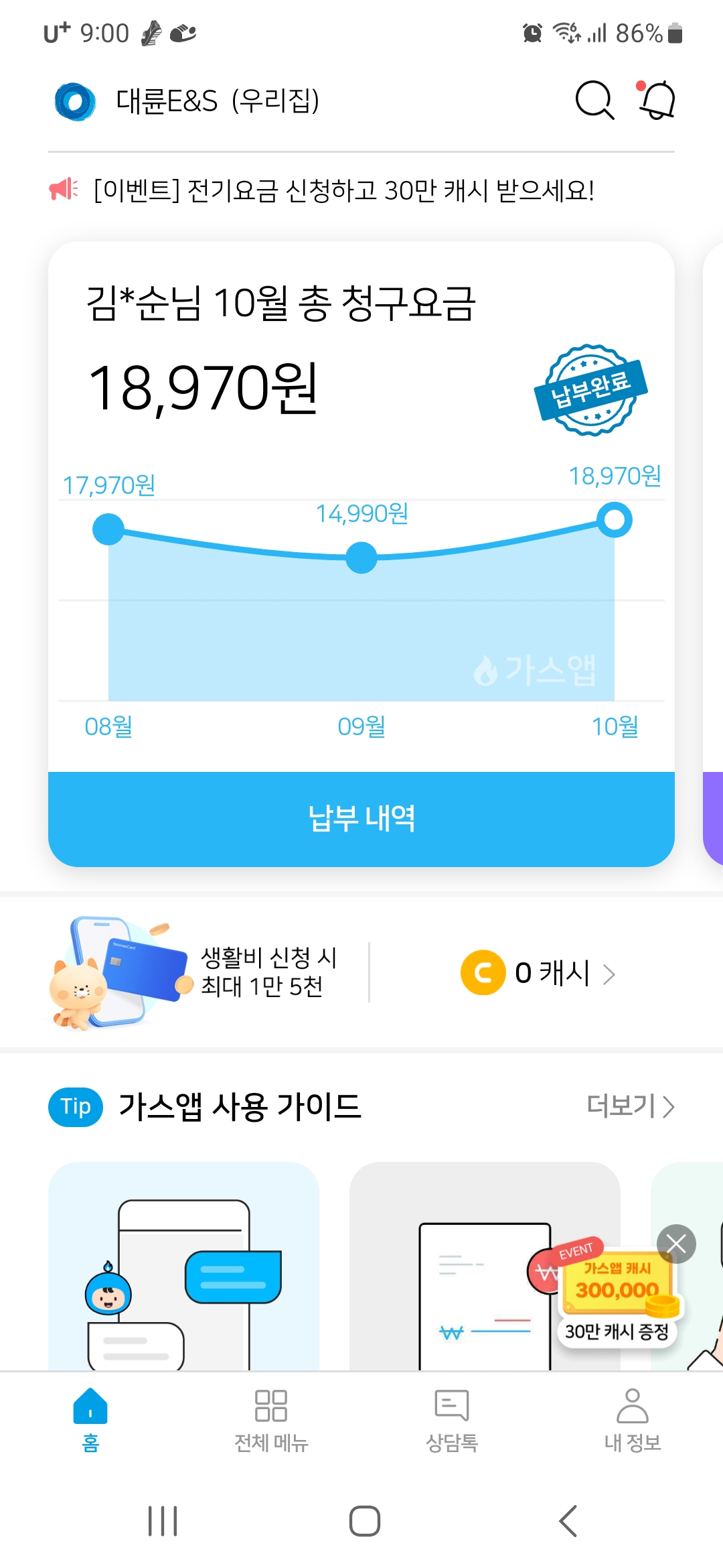 예전부터쭉~~하고있어요 가스요금