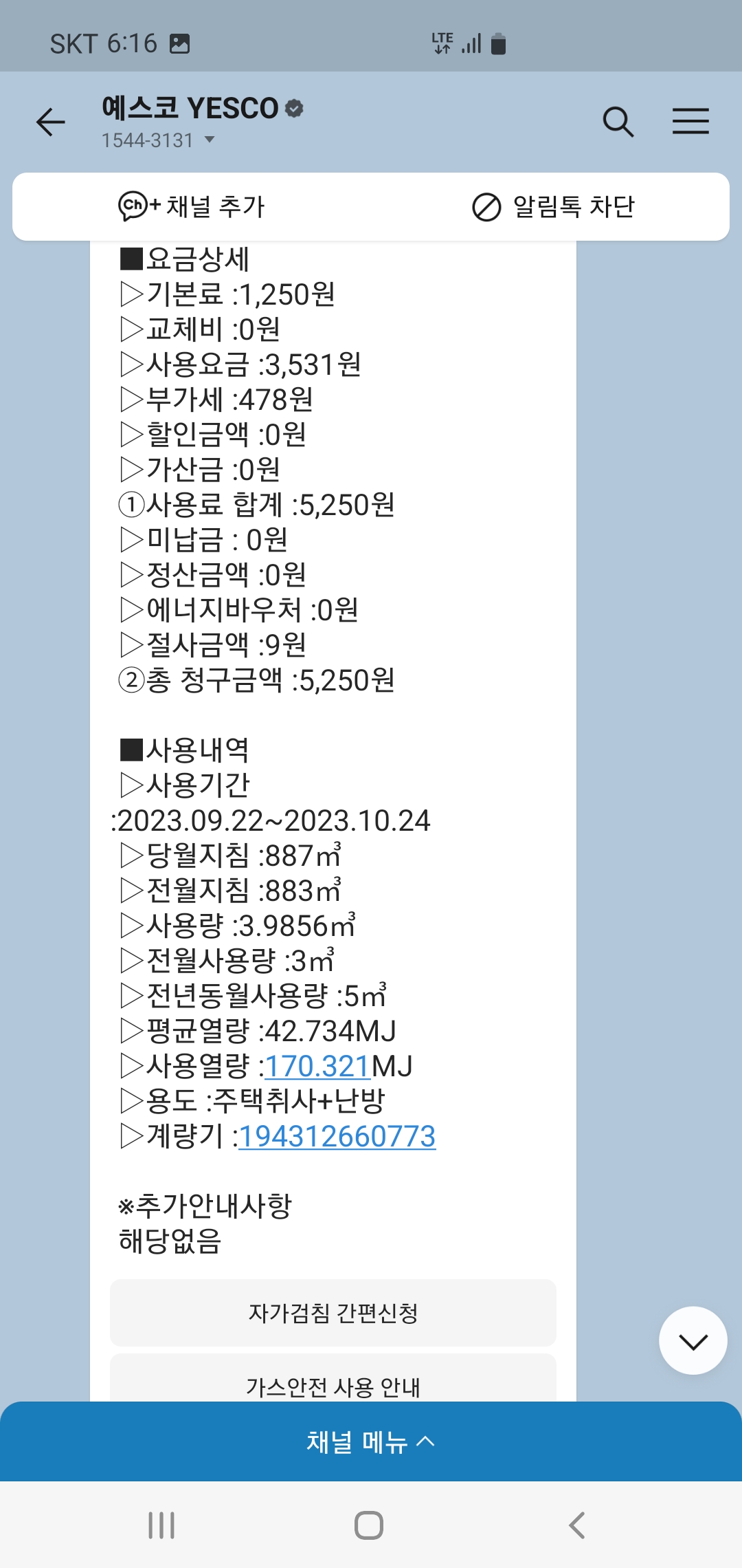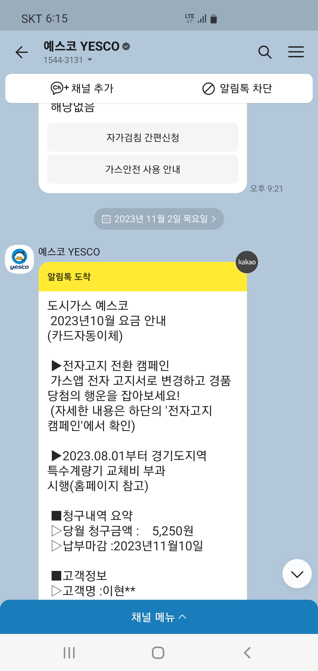 카톡으로 모바일 청구서 받고 있어요. 이번에 처음으로 그린고라운드 챌린지를 알게 되어 참여합니다.