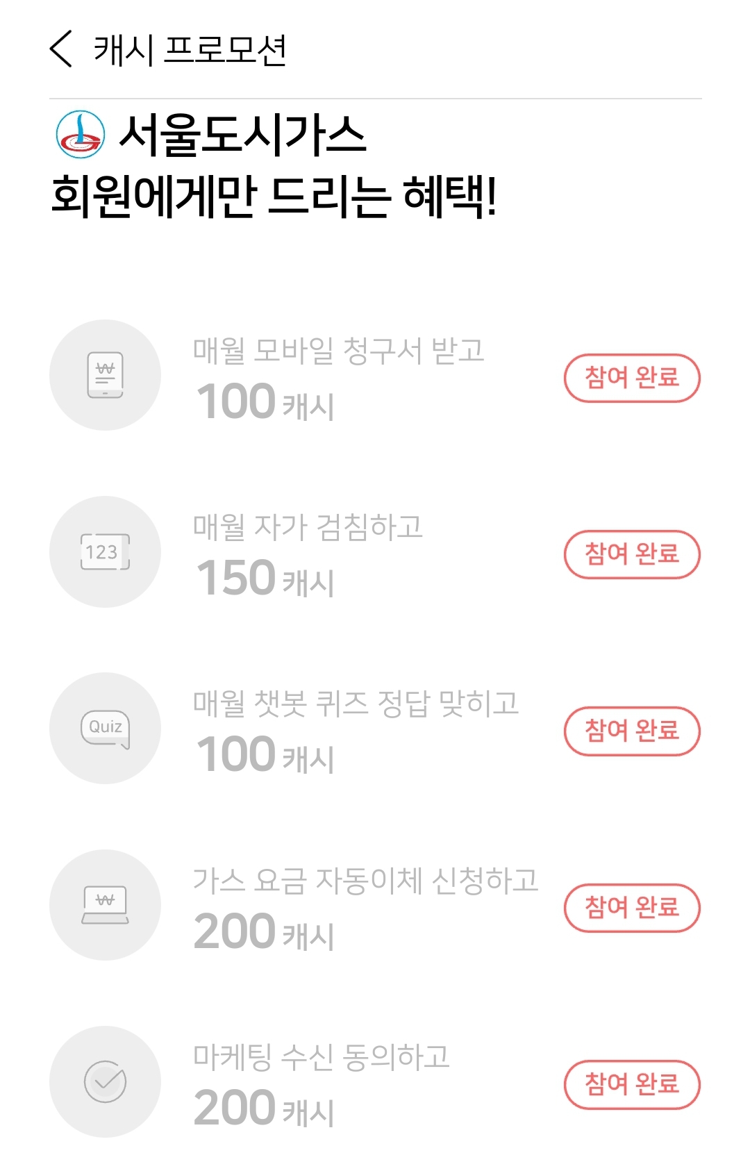 가스앱을 사용해서 검침부터 요금납부까지 모두 모바일로 완성합니다. 모든 참여 완료!!!