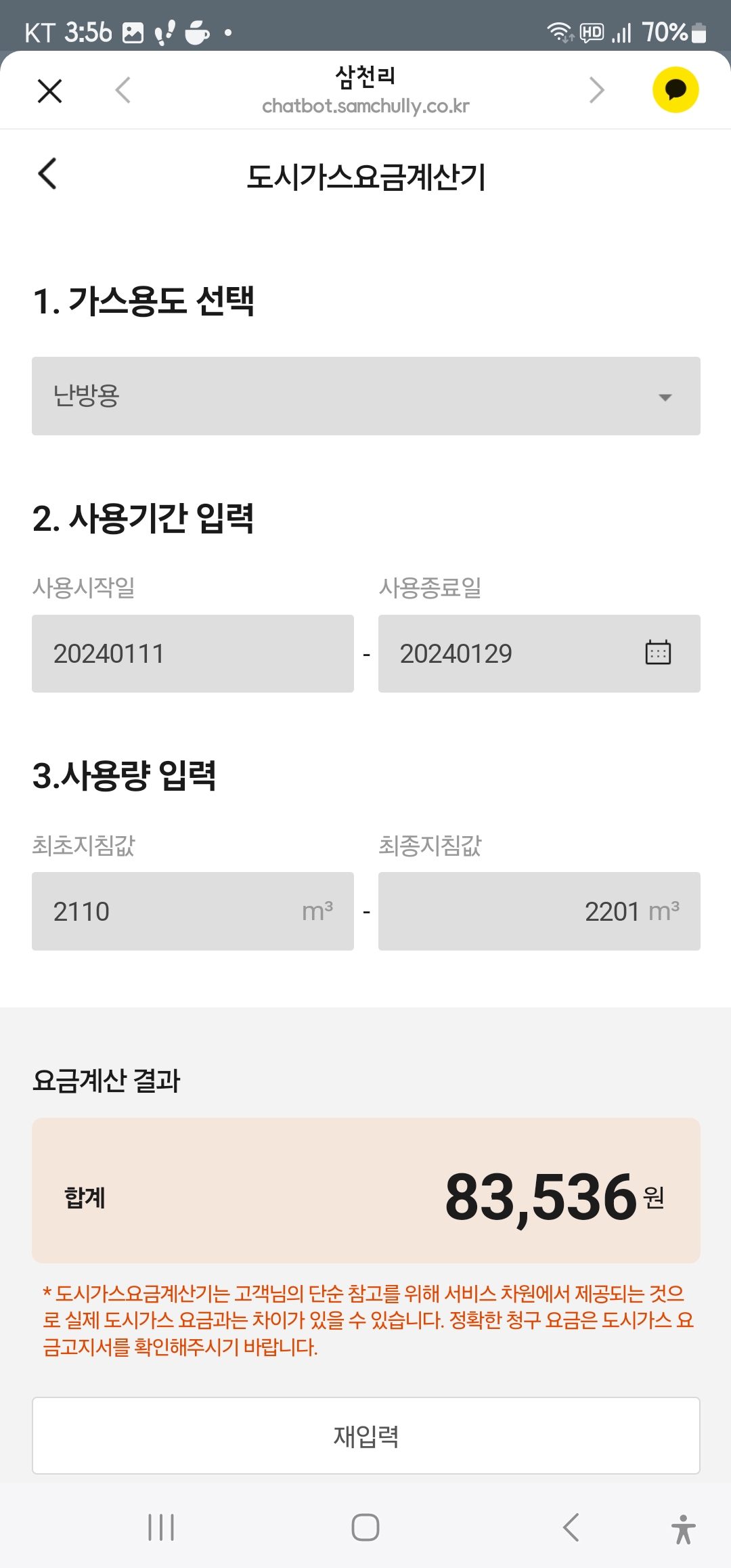 실시간 가스요금 계산했어요