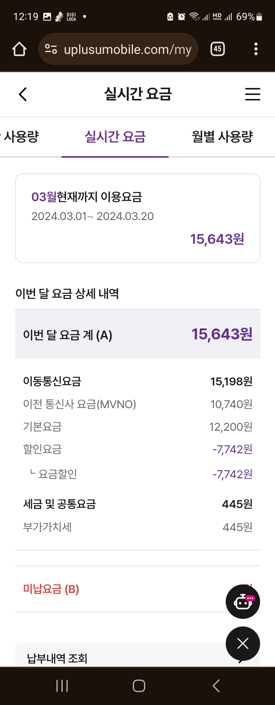 휴대폰 요금 실시간 체크. 절약에 동참해요