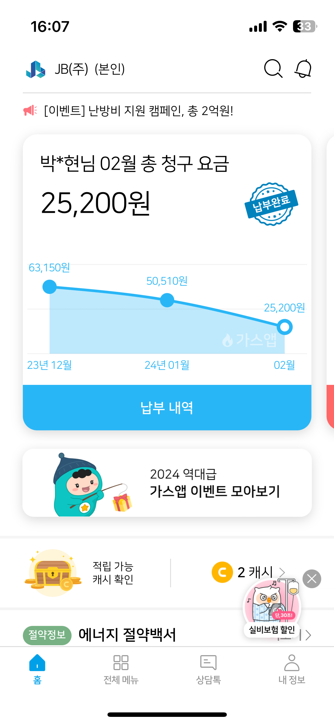 종이 아끼기 위한 모바일 청구서로!