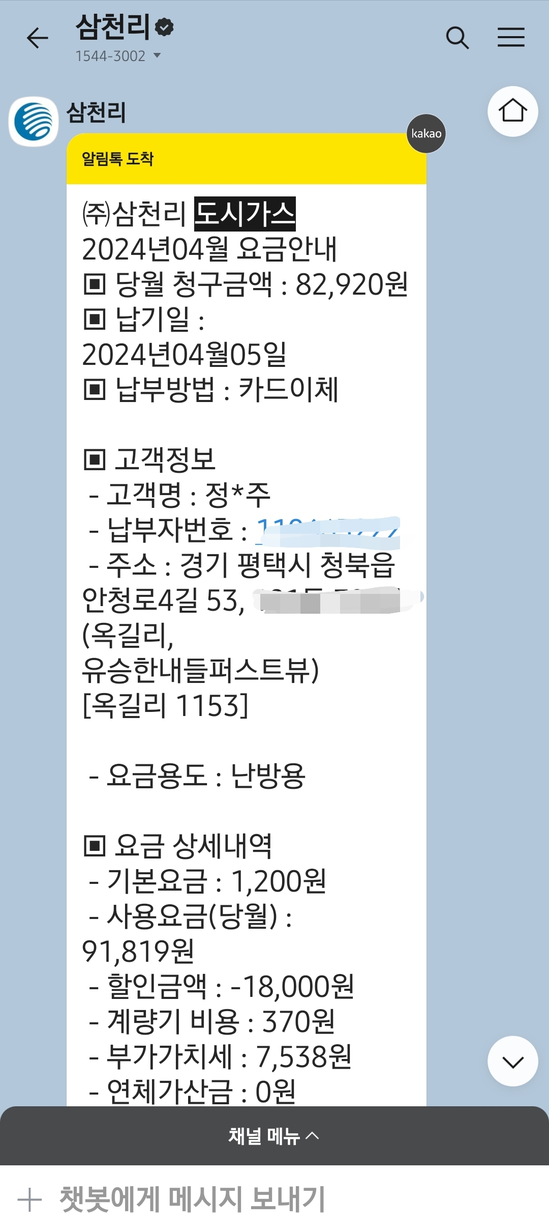 도시가스 모바일 청구서