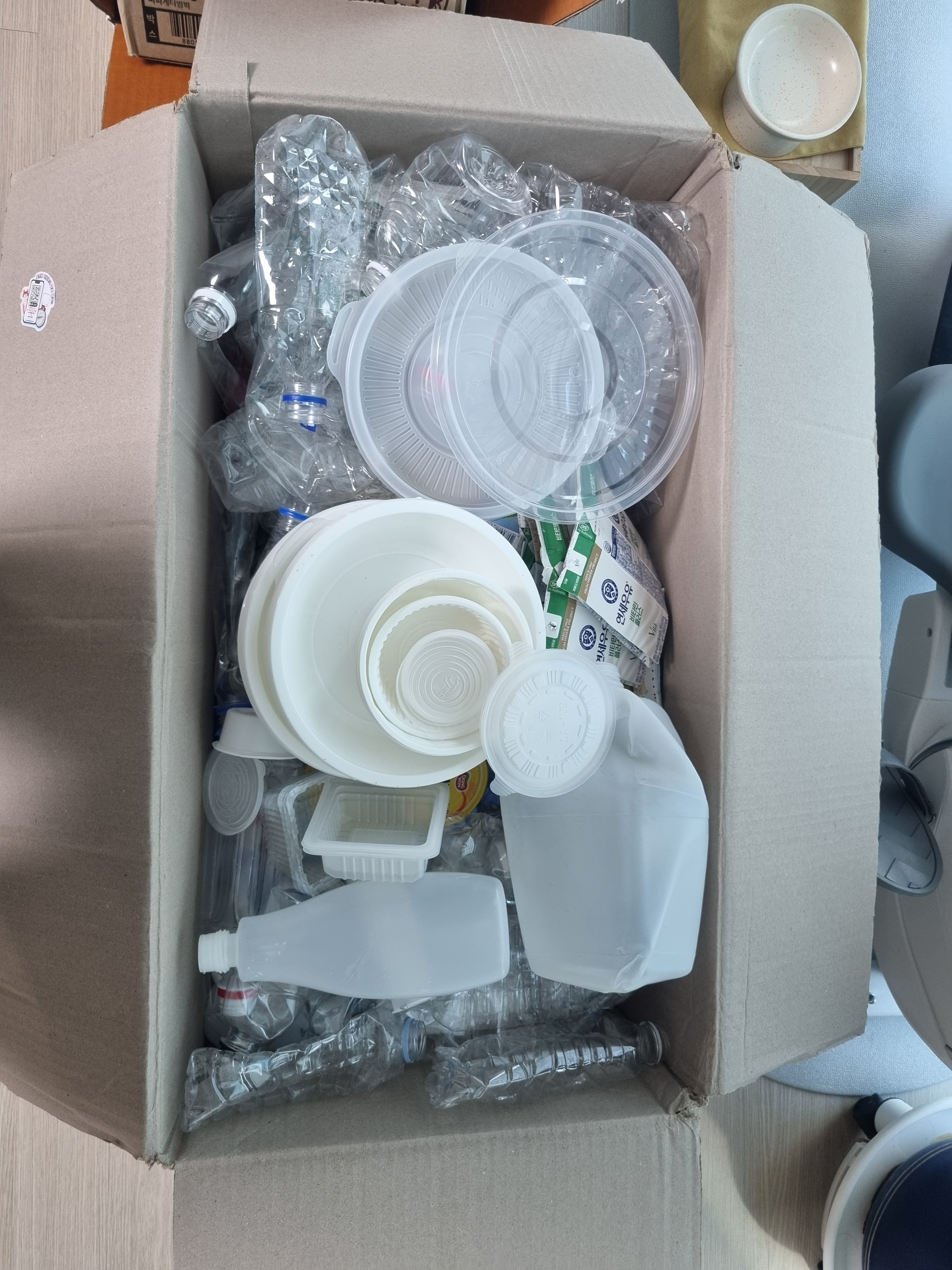 열심히 씻고 말리고 하다보면 한박스 금방 모여 신청해서 보내면 뿌듯합니다 !