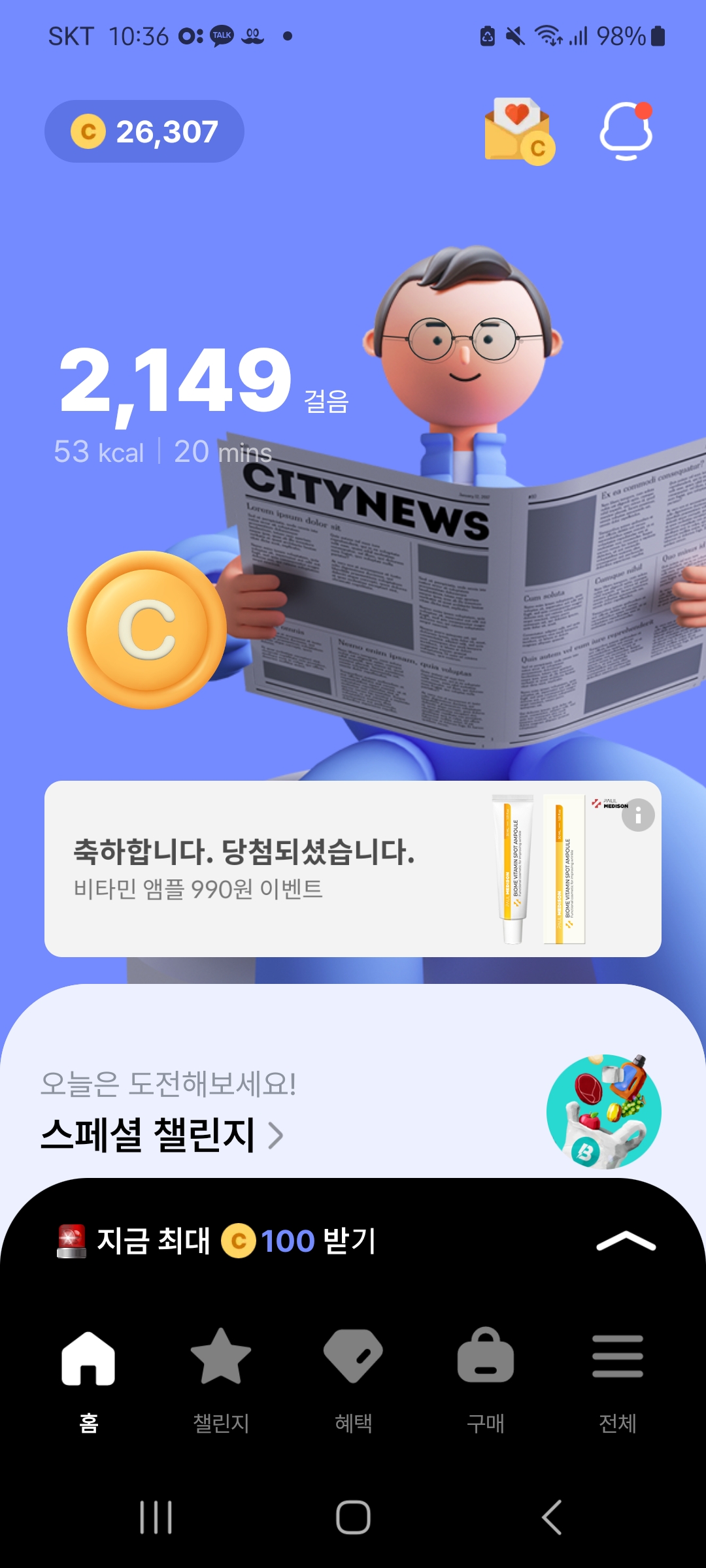 챌린지 적합도가 부족한 경우 비전시 (본인만 보임) 및 적립되지 않을 수 있습니다.