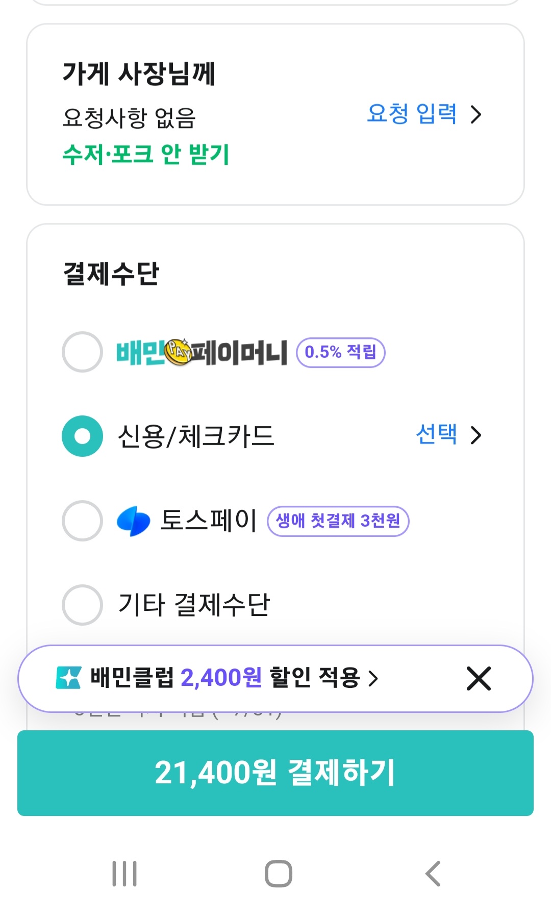 주문시 일회용품안받기