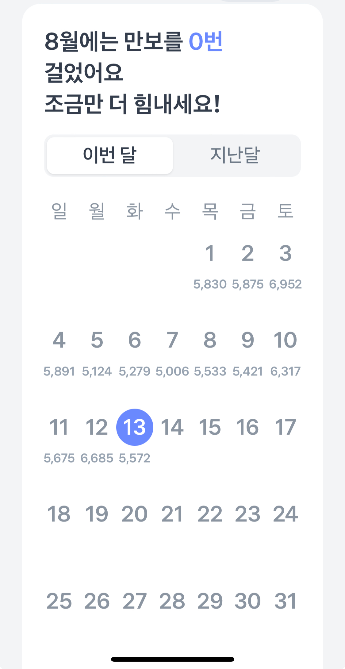 오늘은 오 천보 걸었습니다