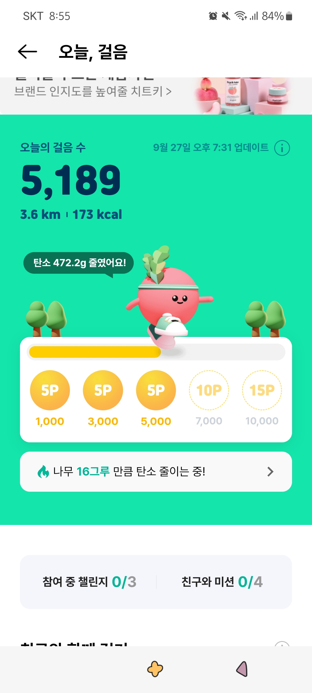 챌린지 적합도가 부족한 경우 비전시 (본인만 보임) 및 적립되지 않을 수 있습니다.