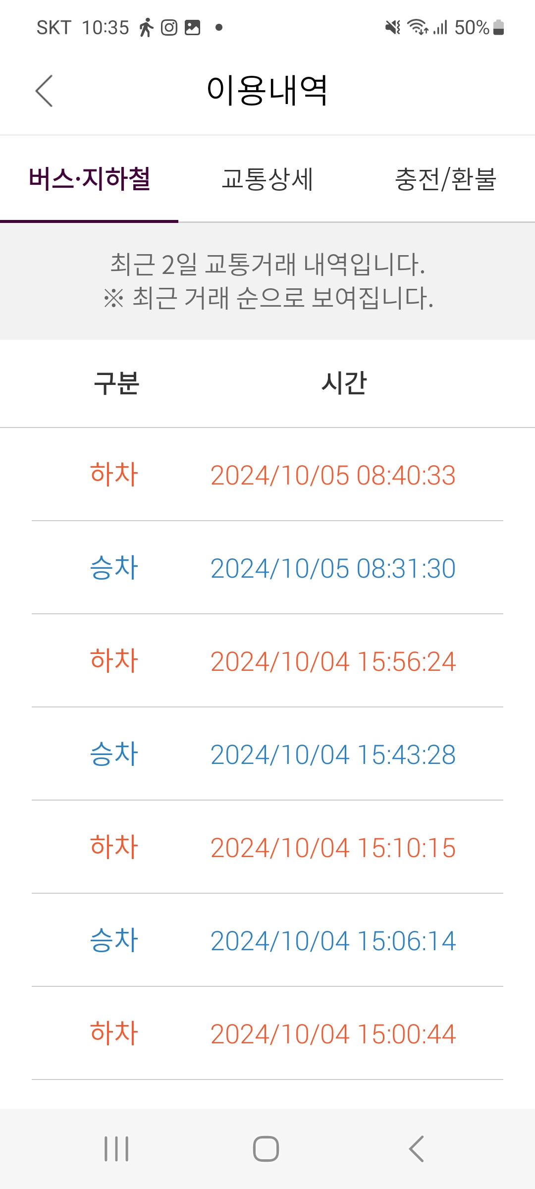 대중교통 인증내역