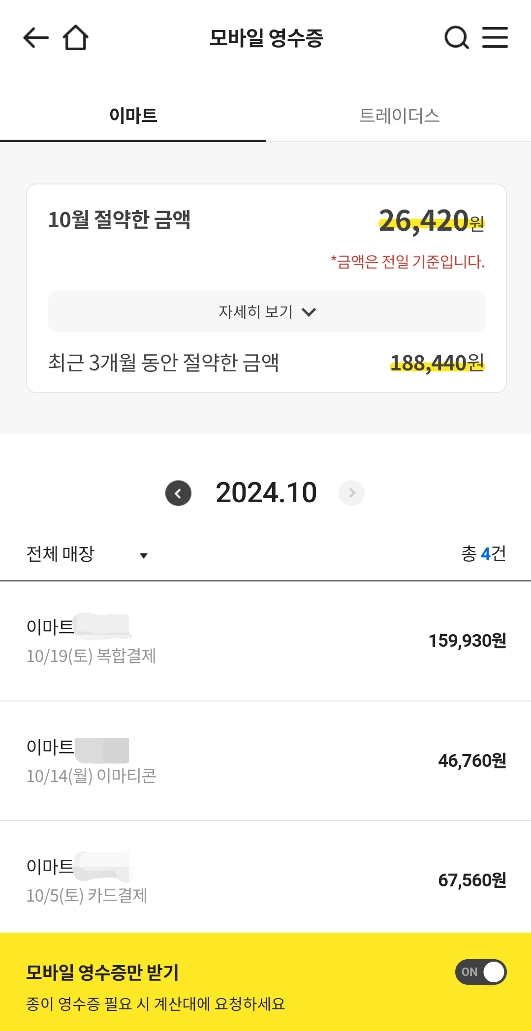 모바일 영수증 받기