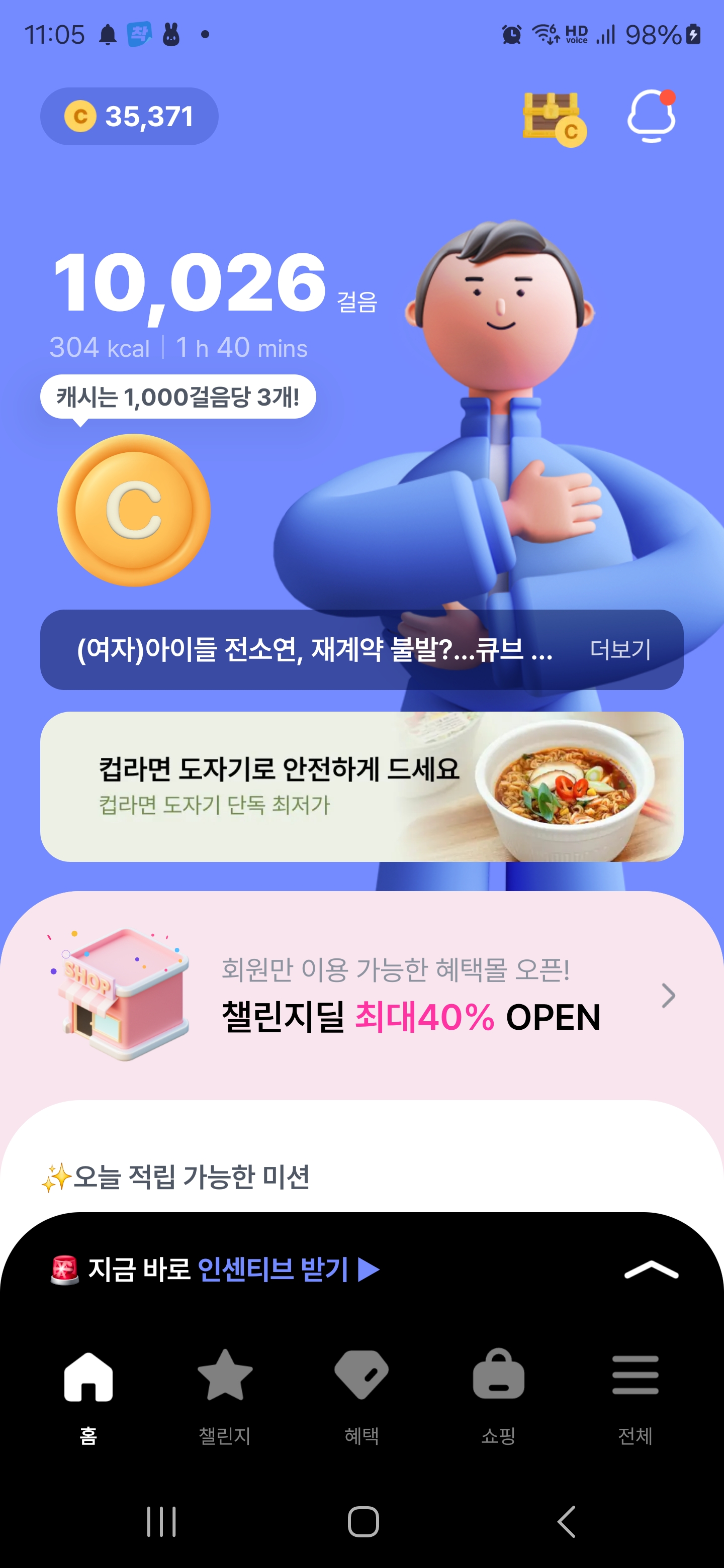 챌린지 적합도가 부족한 경우 비전시 (본인만 보임) 및 적립되지 않을 수 있습니다.