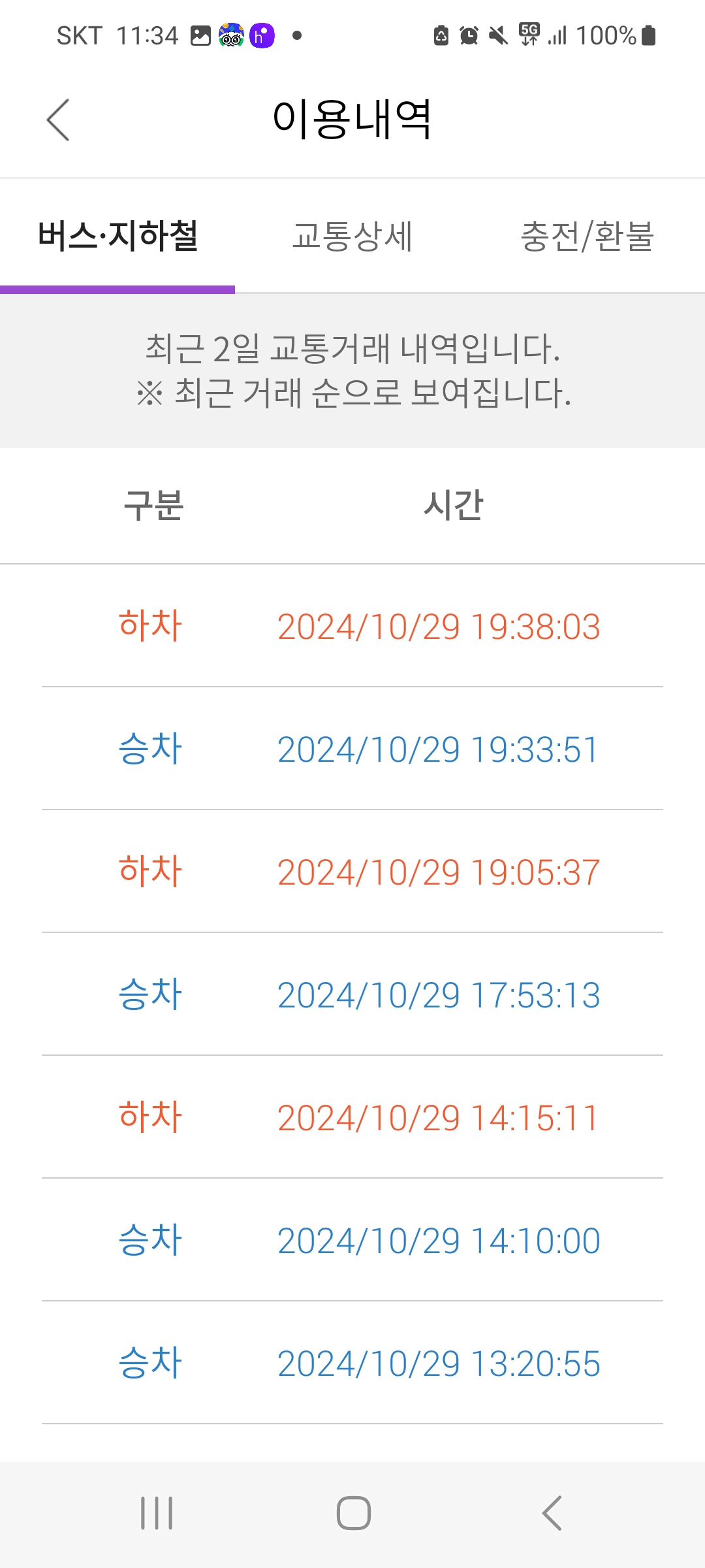 대중교통 인증내역