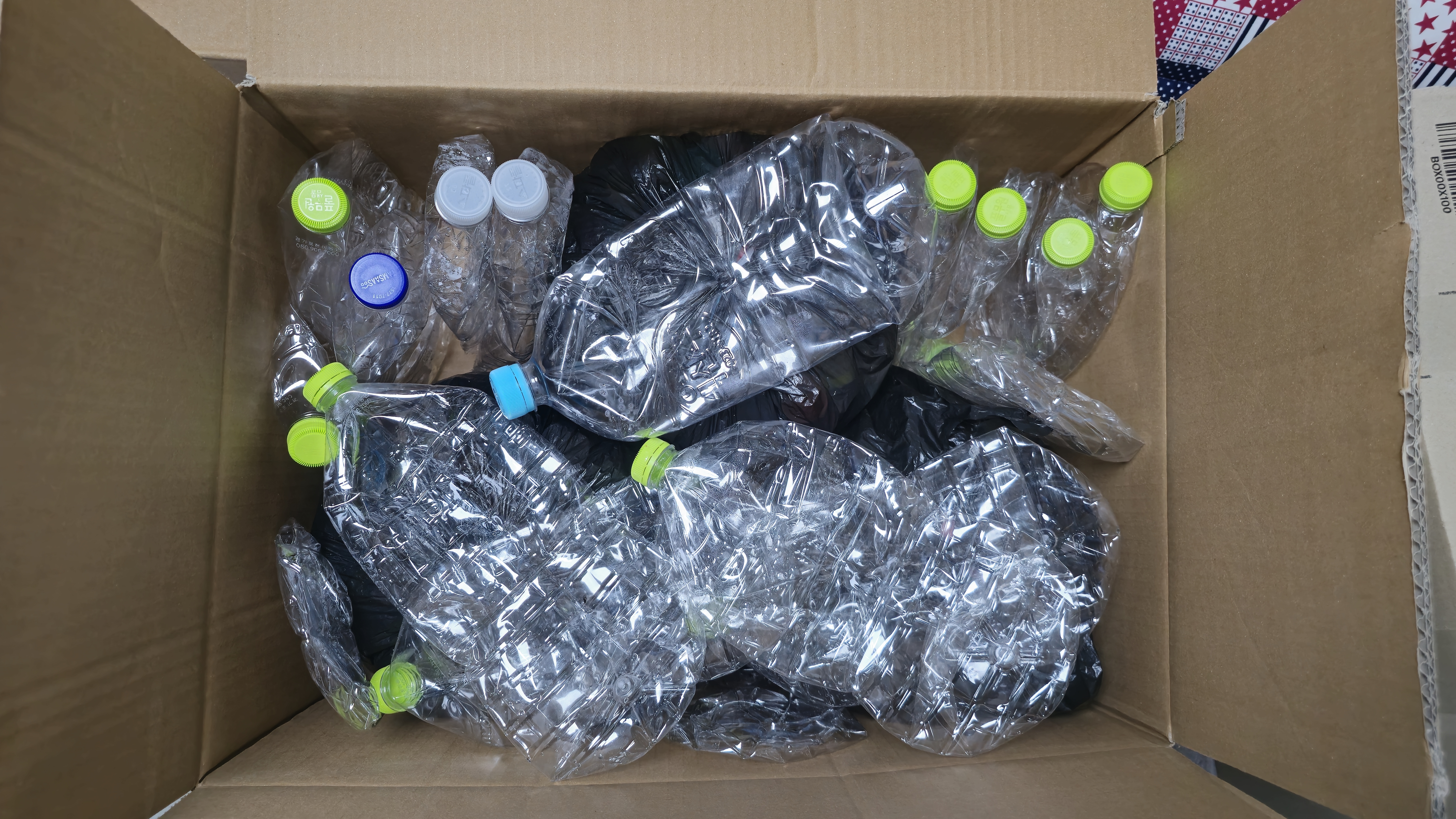 그동안 병뚜껑을 한번 보낼 때마다 수천개씩 보냈지만, 페트병은 거의 비슷한 규모