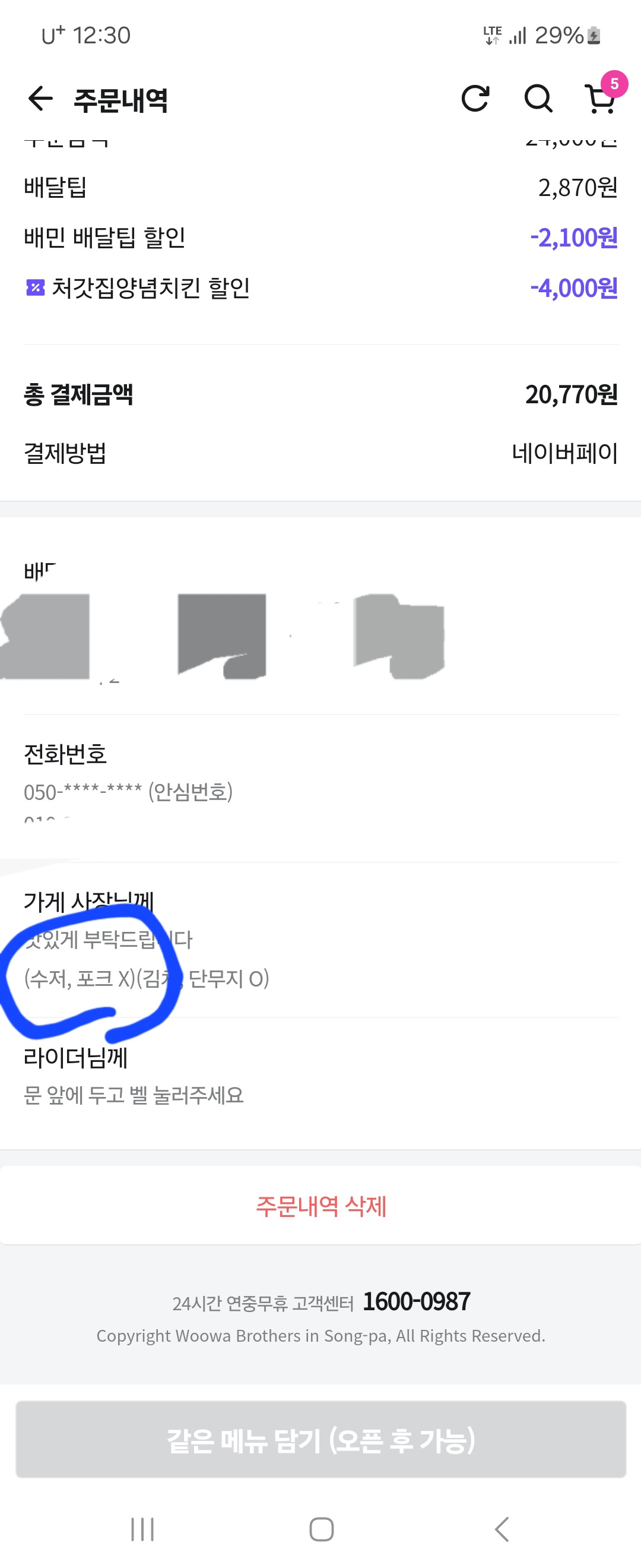 배달일회용수저안받기