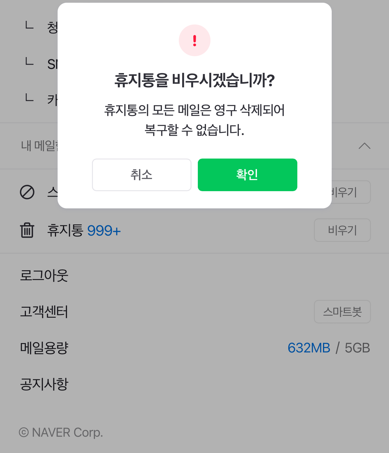메일함 비우기