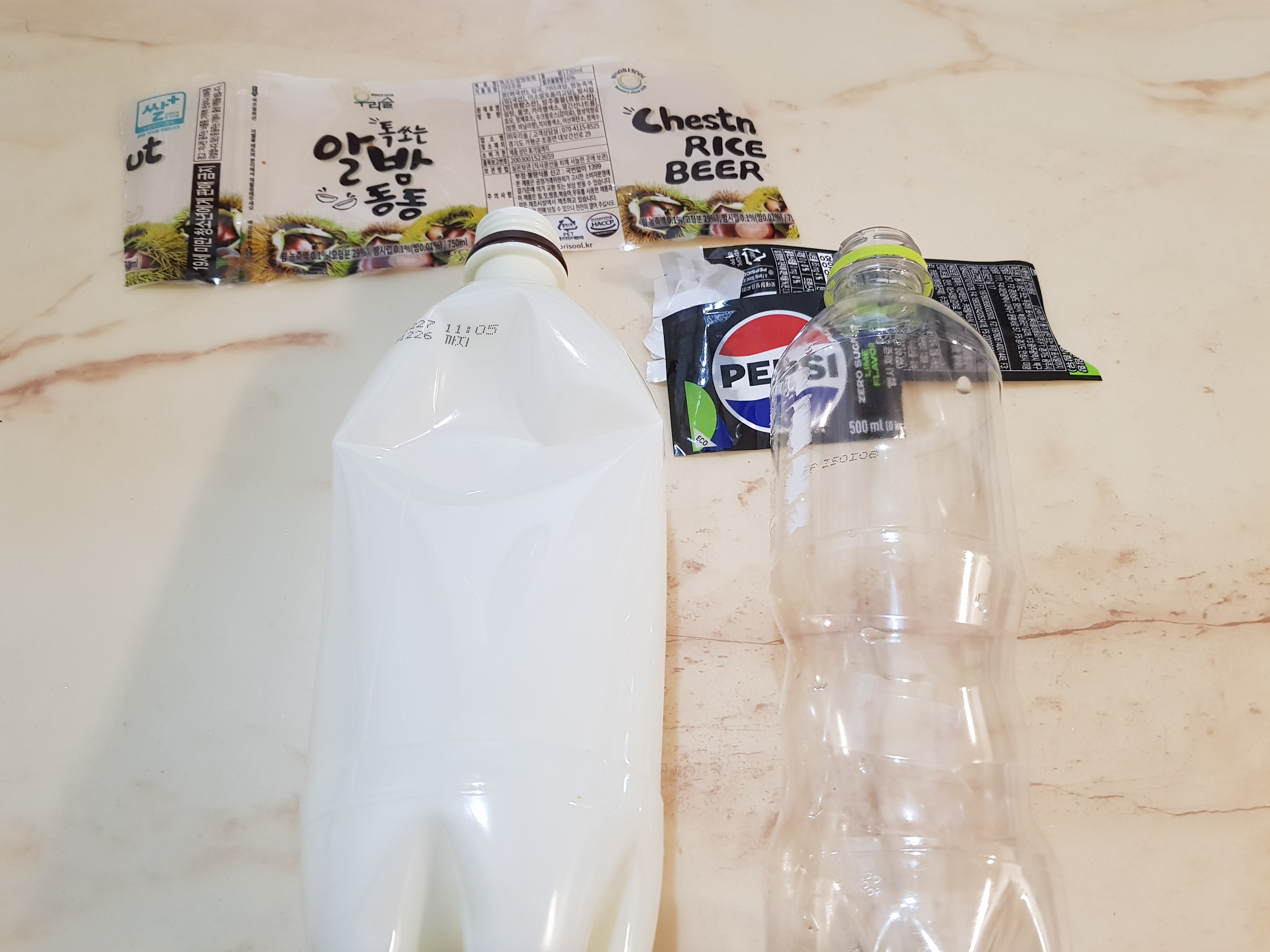 플라스틱 병 라벨제거했어요