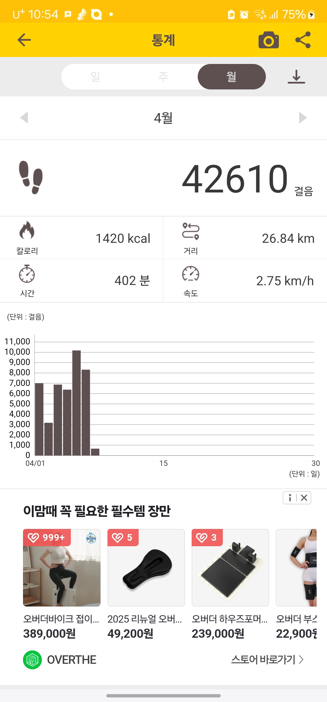 4월2일 하루빼고 매일 6천보이상걷기 하는중