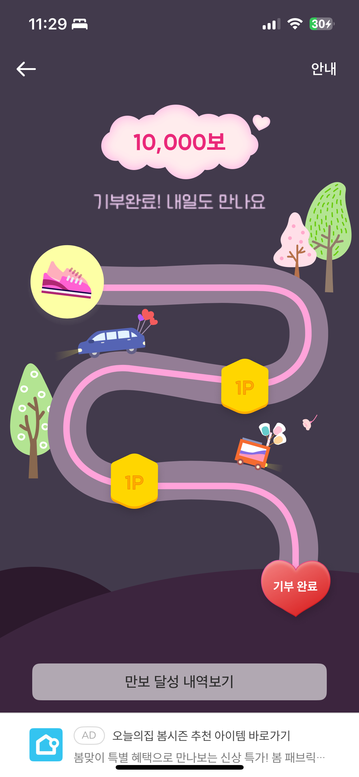 열심히 만보 먹고 기부 하기 성공